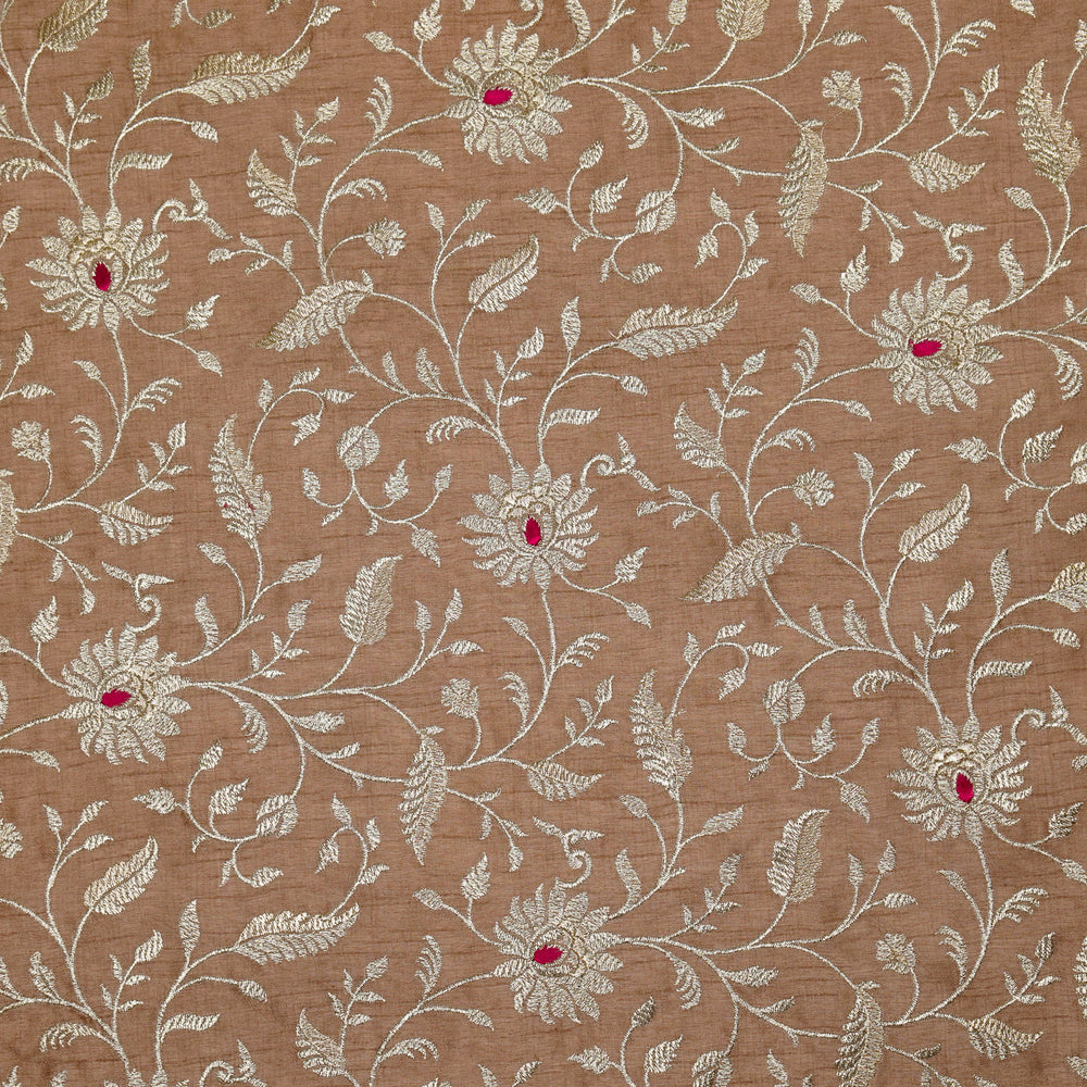 Tapti Jaal on Dusky Gold Semi Chanderi Embroidered Fabric