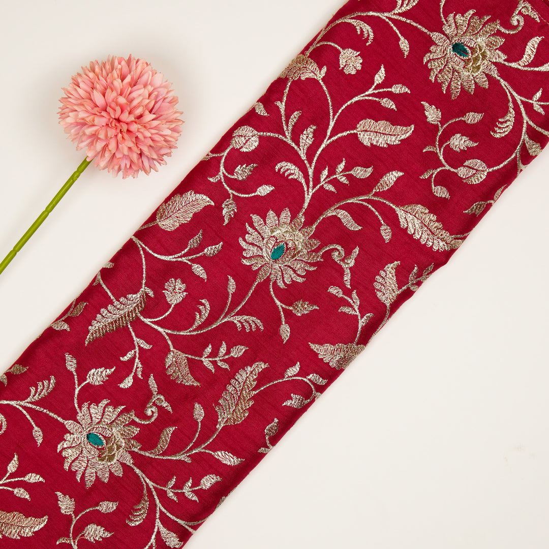 Kanira Jaal on Dark Fuxia Dola Silk Embroidered Fabric