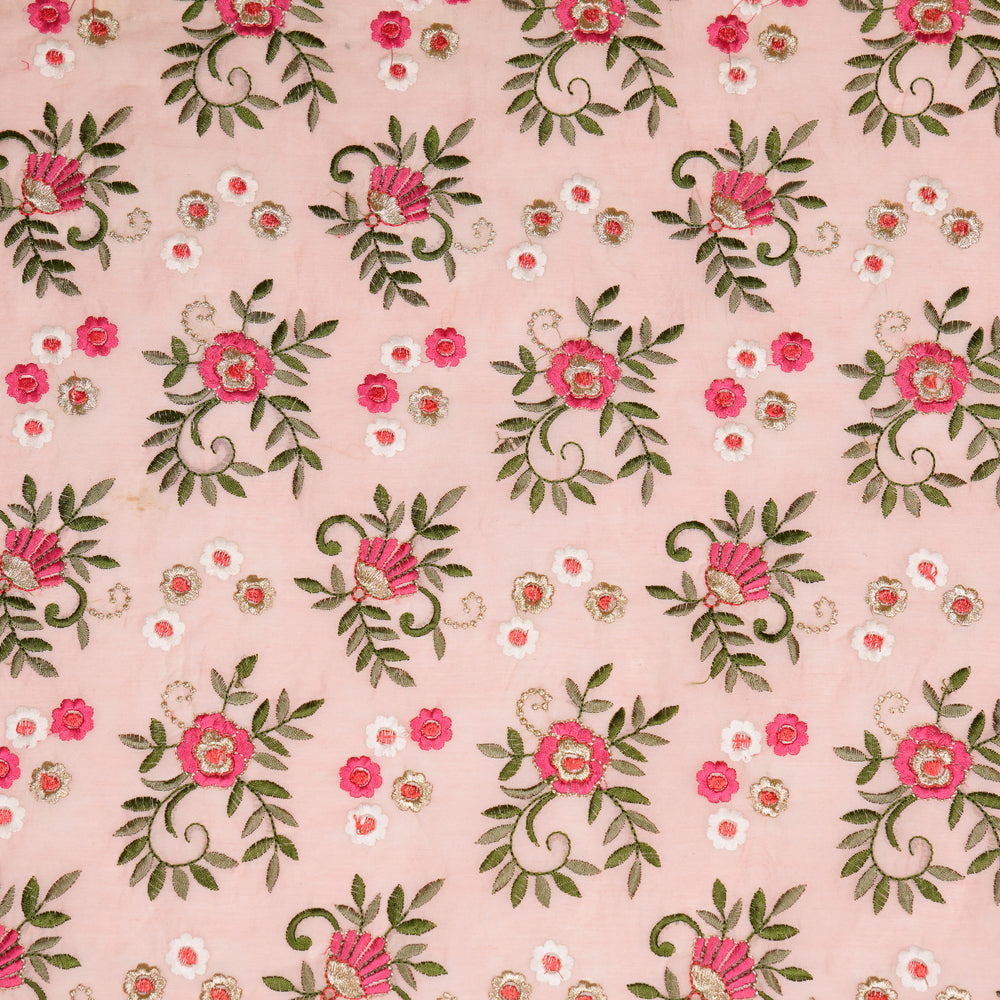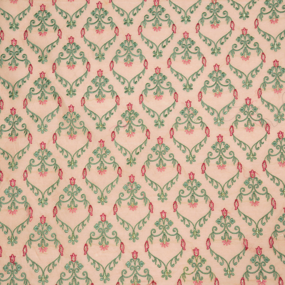 Shyama Jaal on Light Peach Semi Chanderi Embroidered Fabric