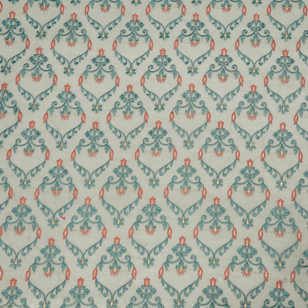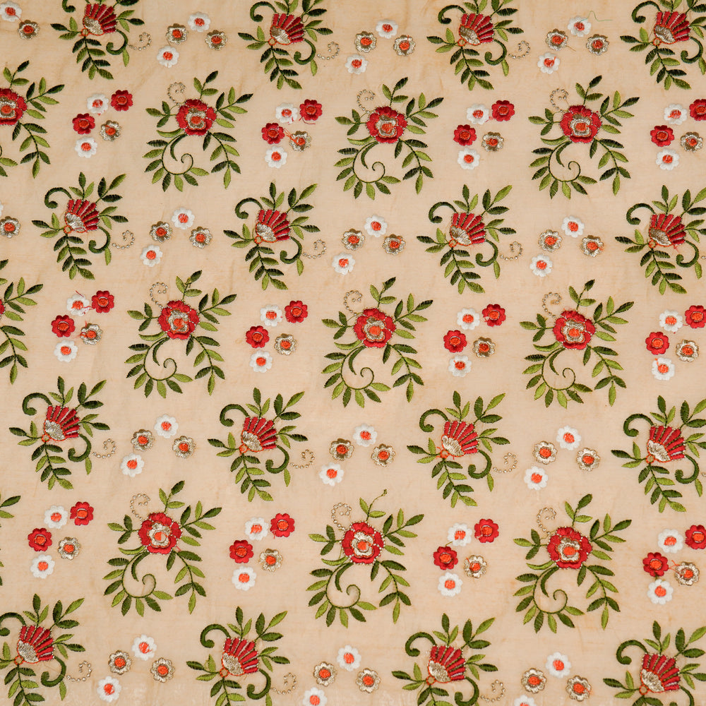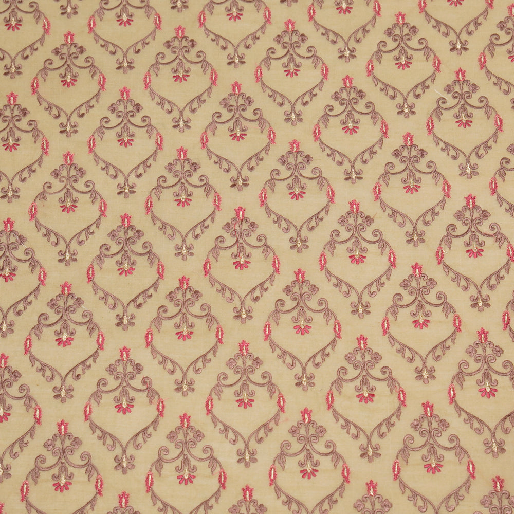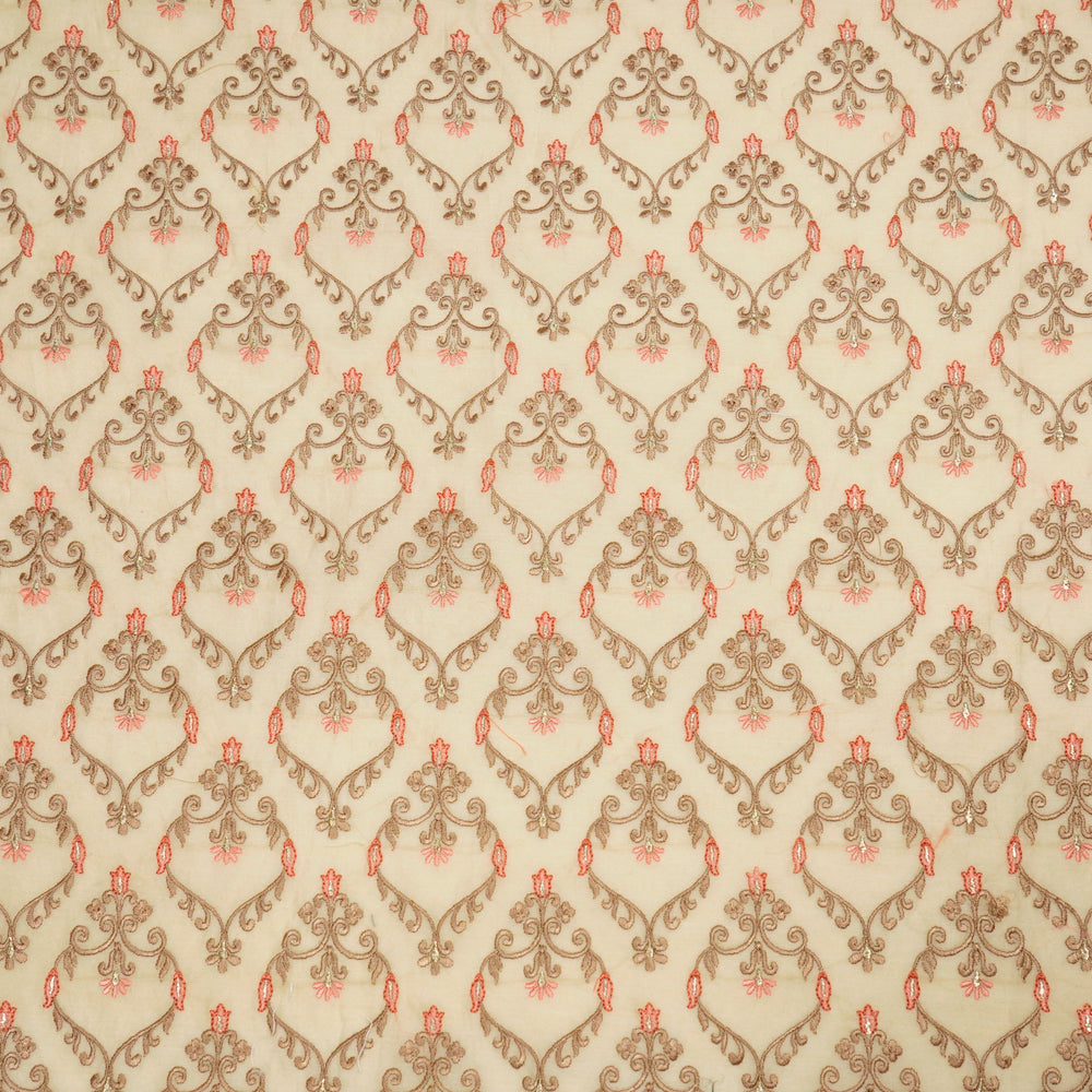 Pushti Buta on Cream Luxe Silk Chanderi Embroidered Fabric