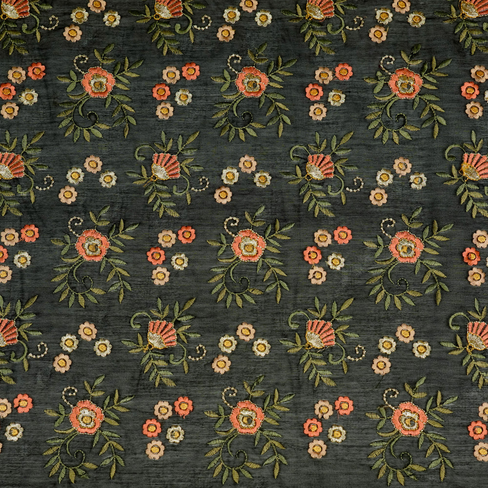 Zeena Jaal on Charcoal Dola Silk Embroidered Fabric
