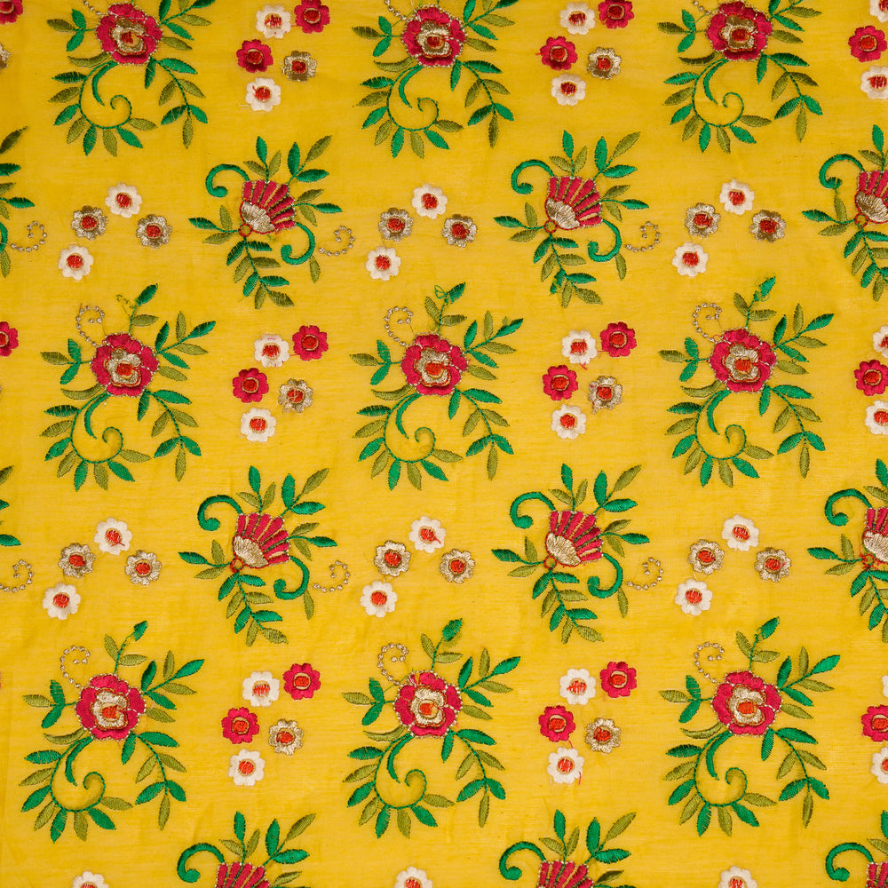 Tapti Jaal on Lemon Semi Chanderi Embroidered Fabric