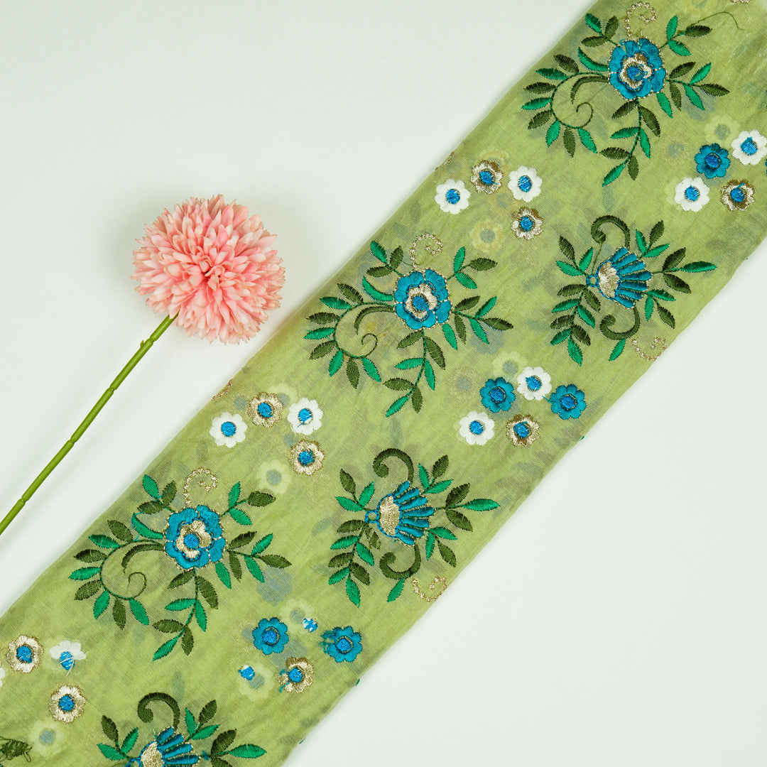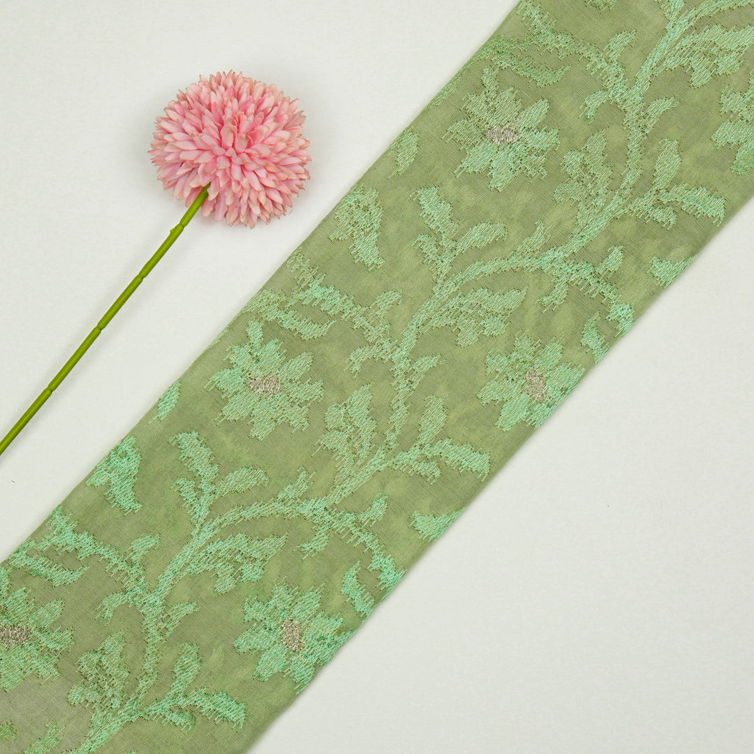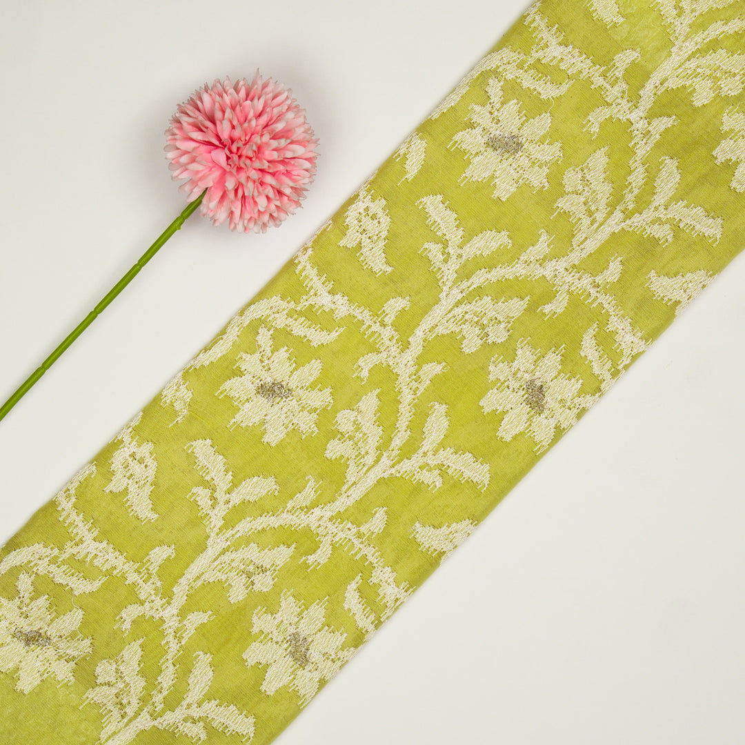 Shyama Jaal on Light Pista Semi Chanderi Embroidered Fabric