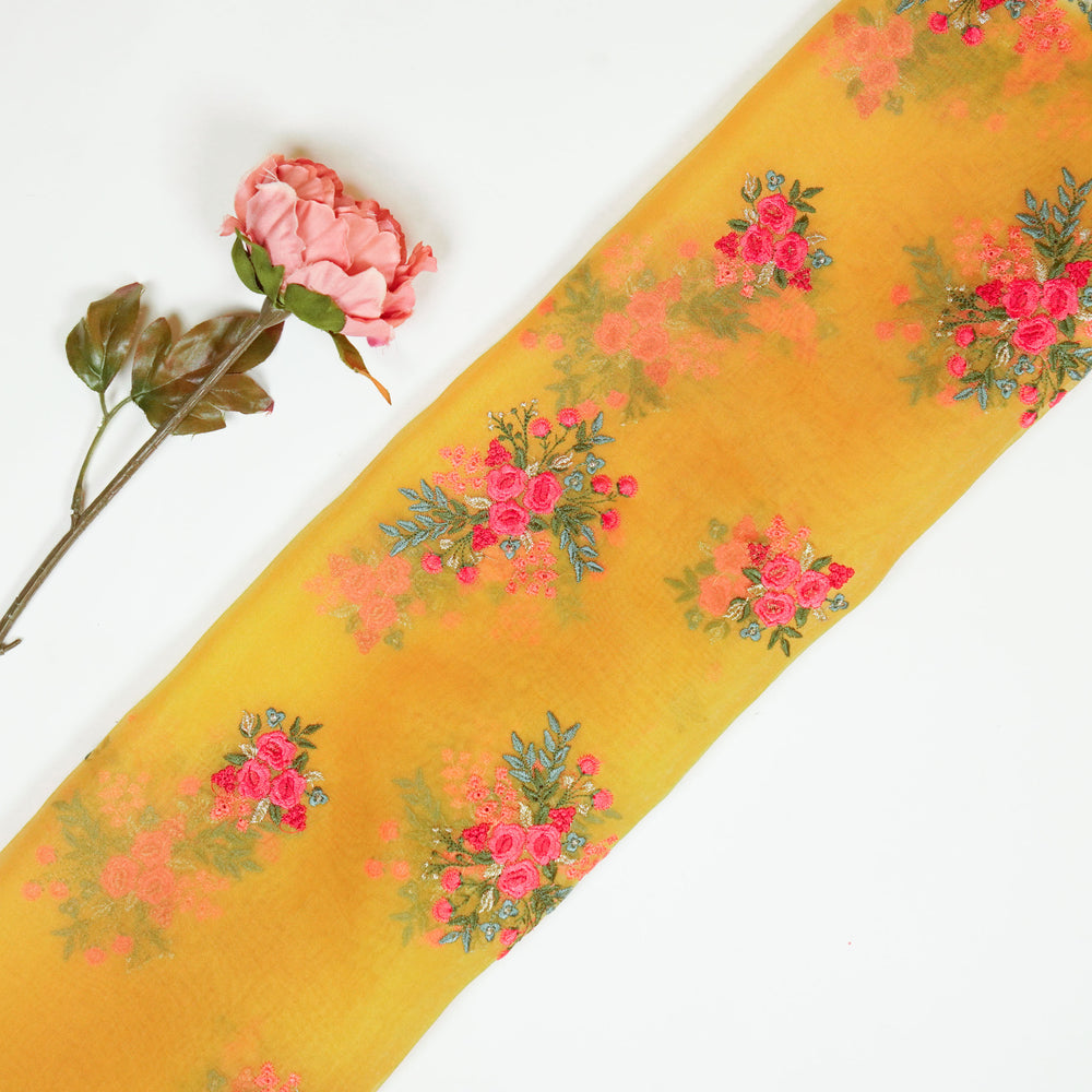 Haniya Jaal On Dusky GoldSemi Georgette Embroidered Fabric