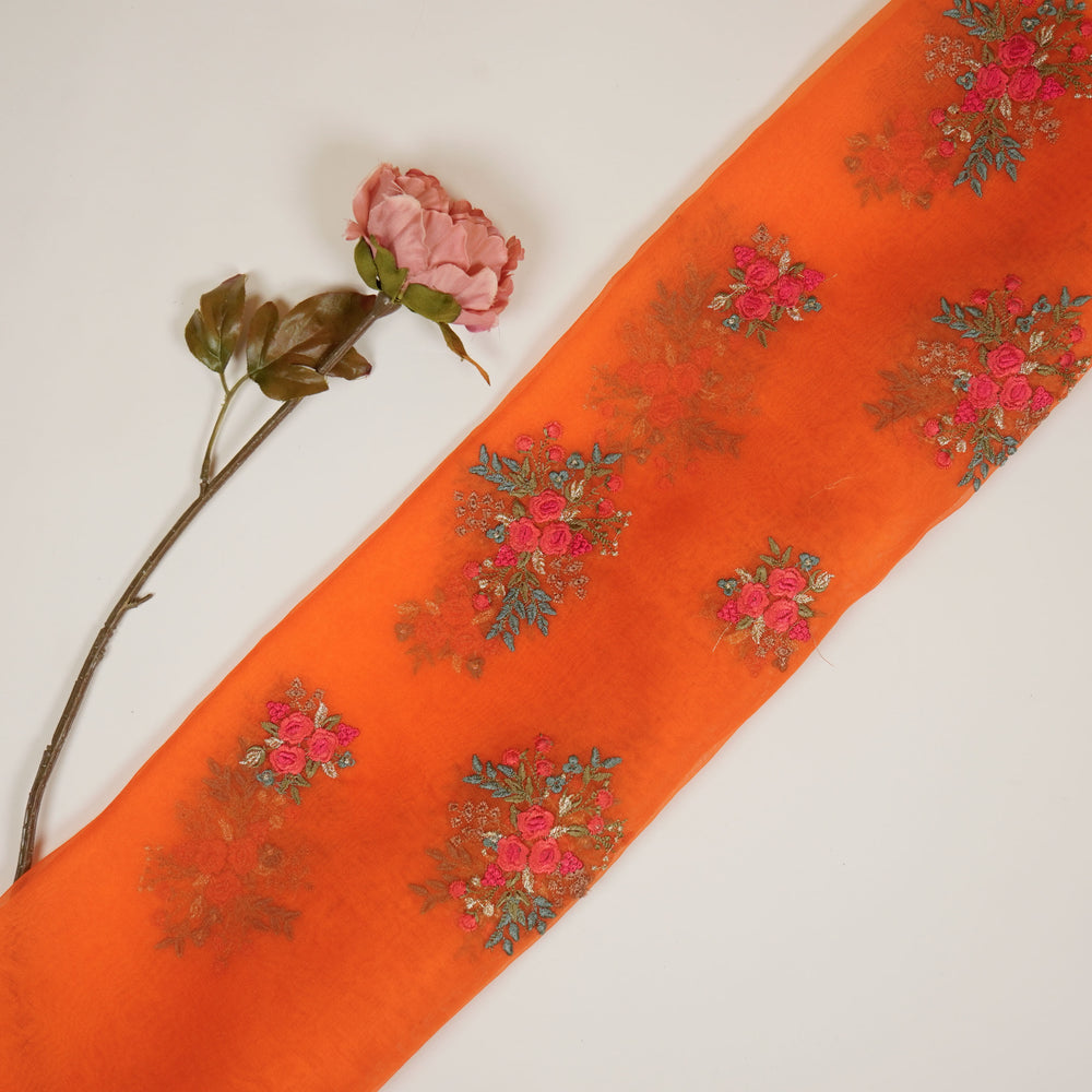 Haniya Jaal On Dark PeachSemi Georgette Embroidered Fabric
