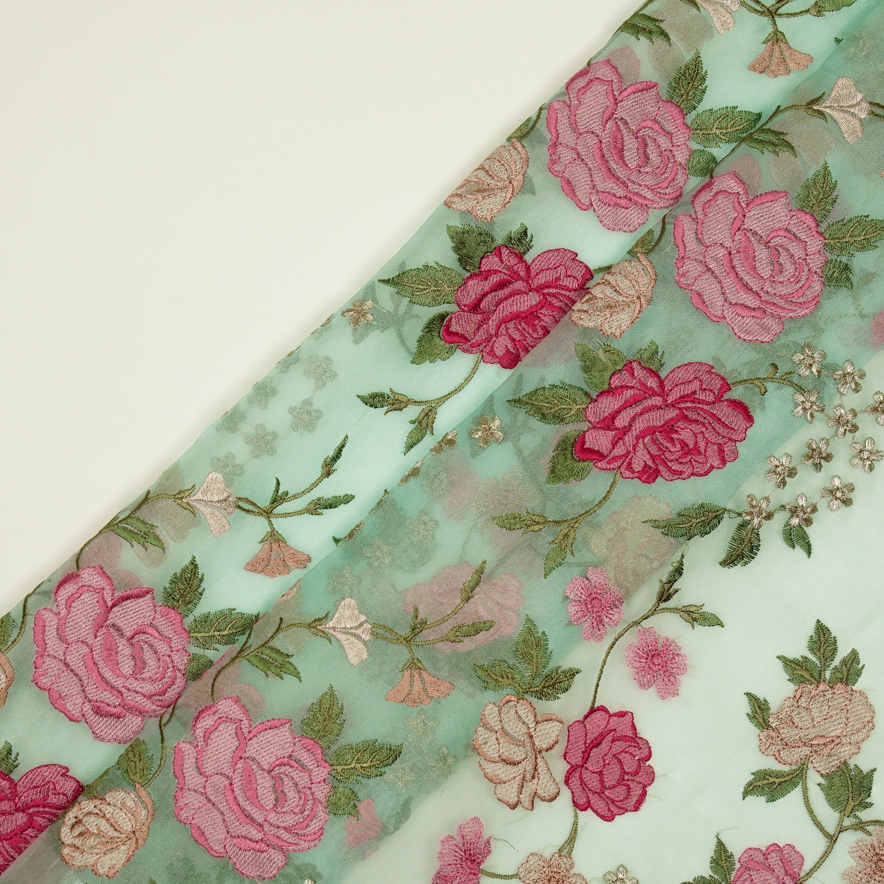 Anvitha Jaal on Aqua Silk Organza Embroidered Fabric