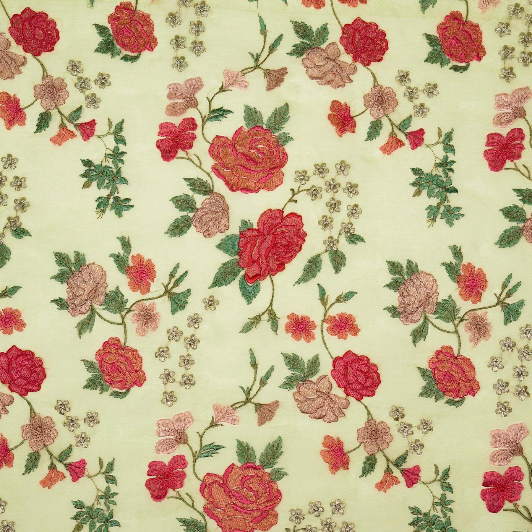 Anvitha Jaal on Lemon Silk Organza Embroidered Fabric