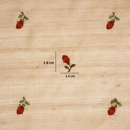 Kuhu Tiny Buti on Natural/Red Tussar Silk Embroidered Fabric