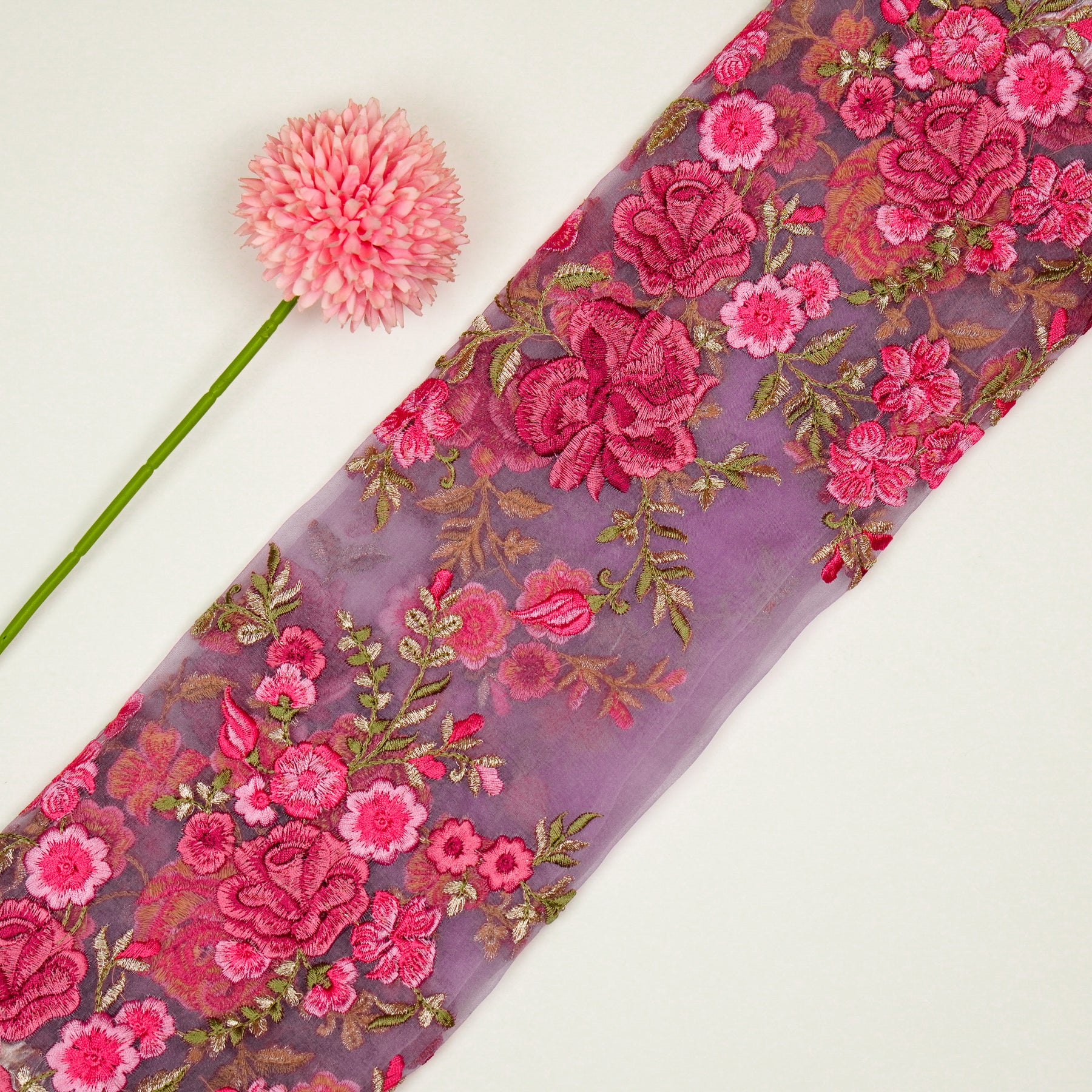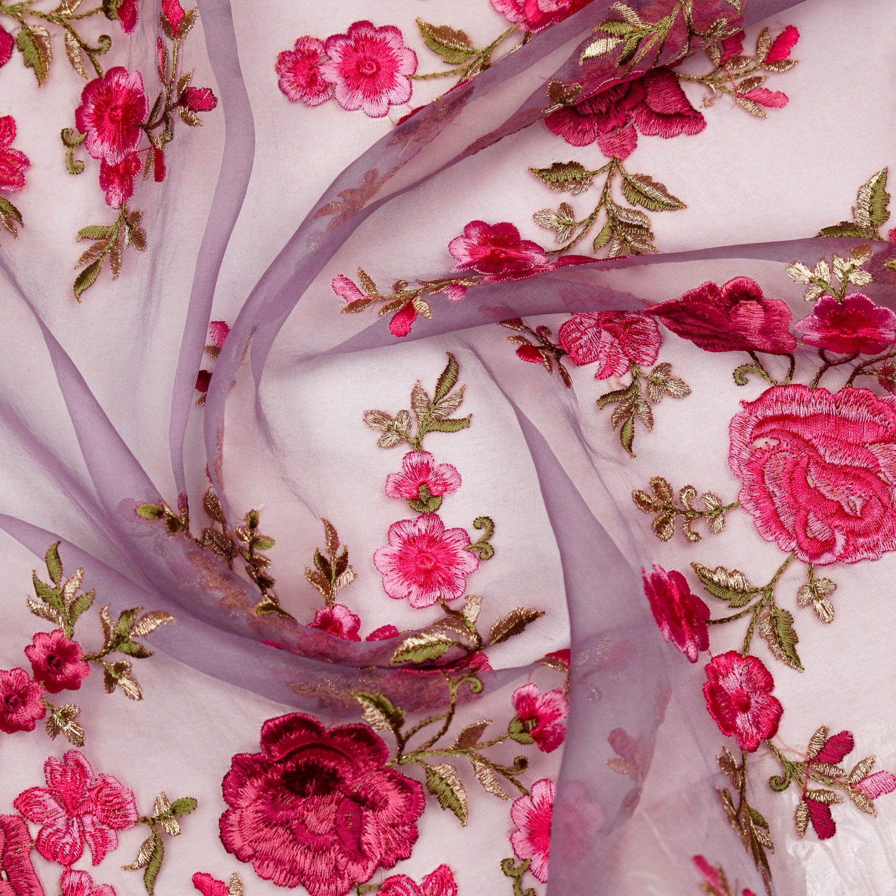 Mahaara Jaal on Deep Mauve Silk Organza Embroidered Fabric