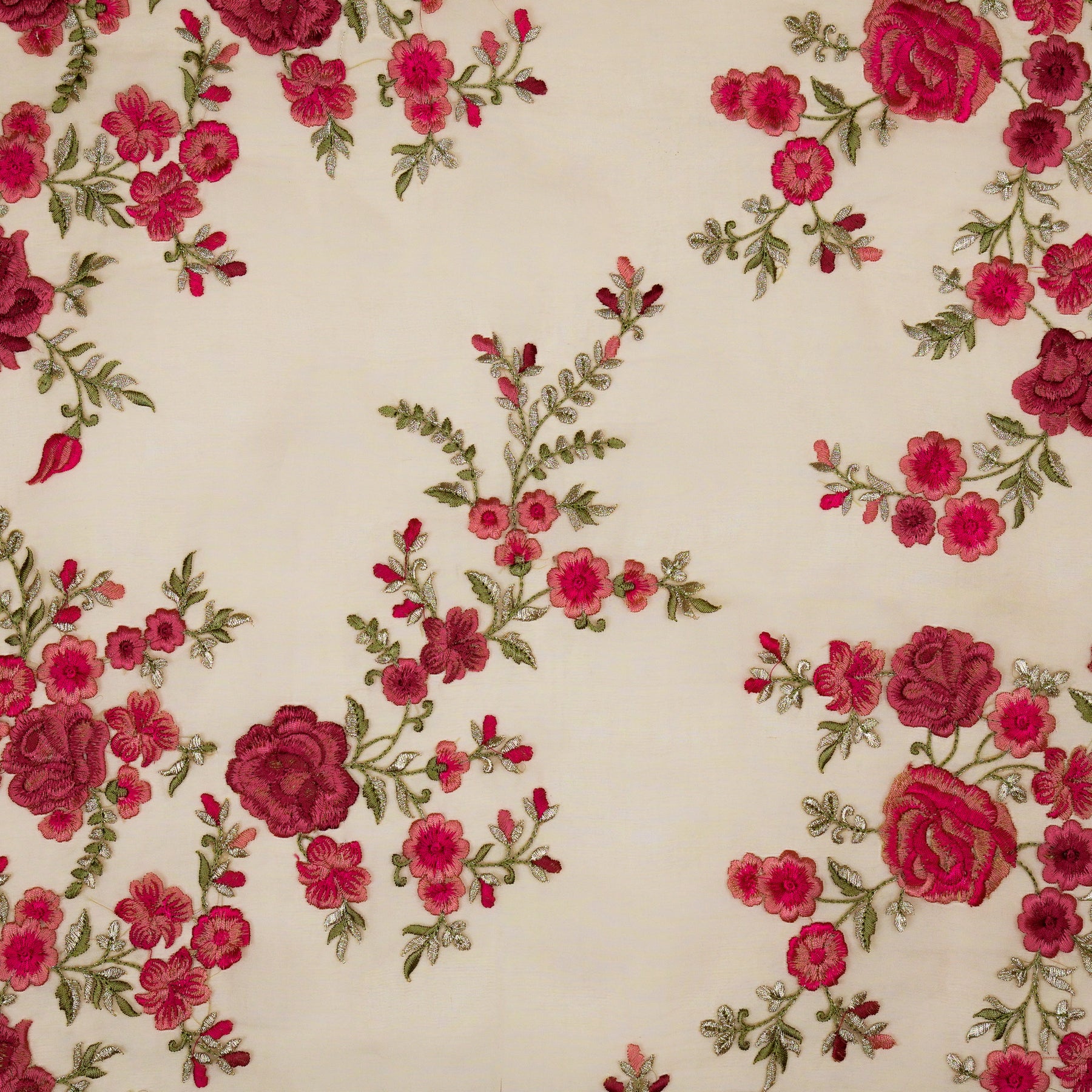 Mahaara Jaal on Peach Silk Organza Embroidered Fabric
