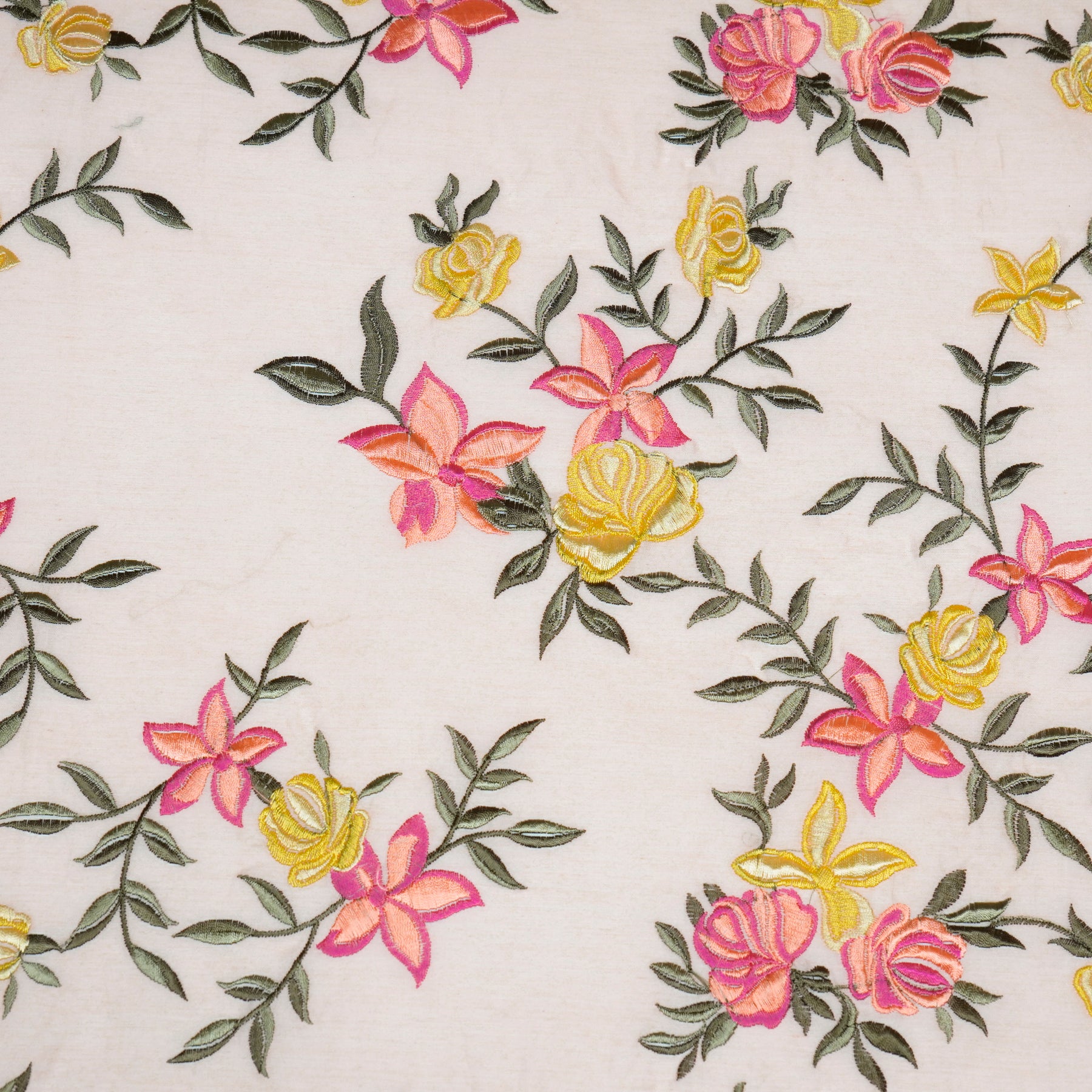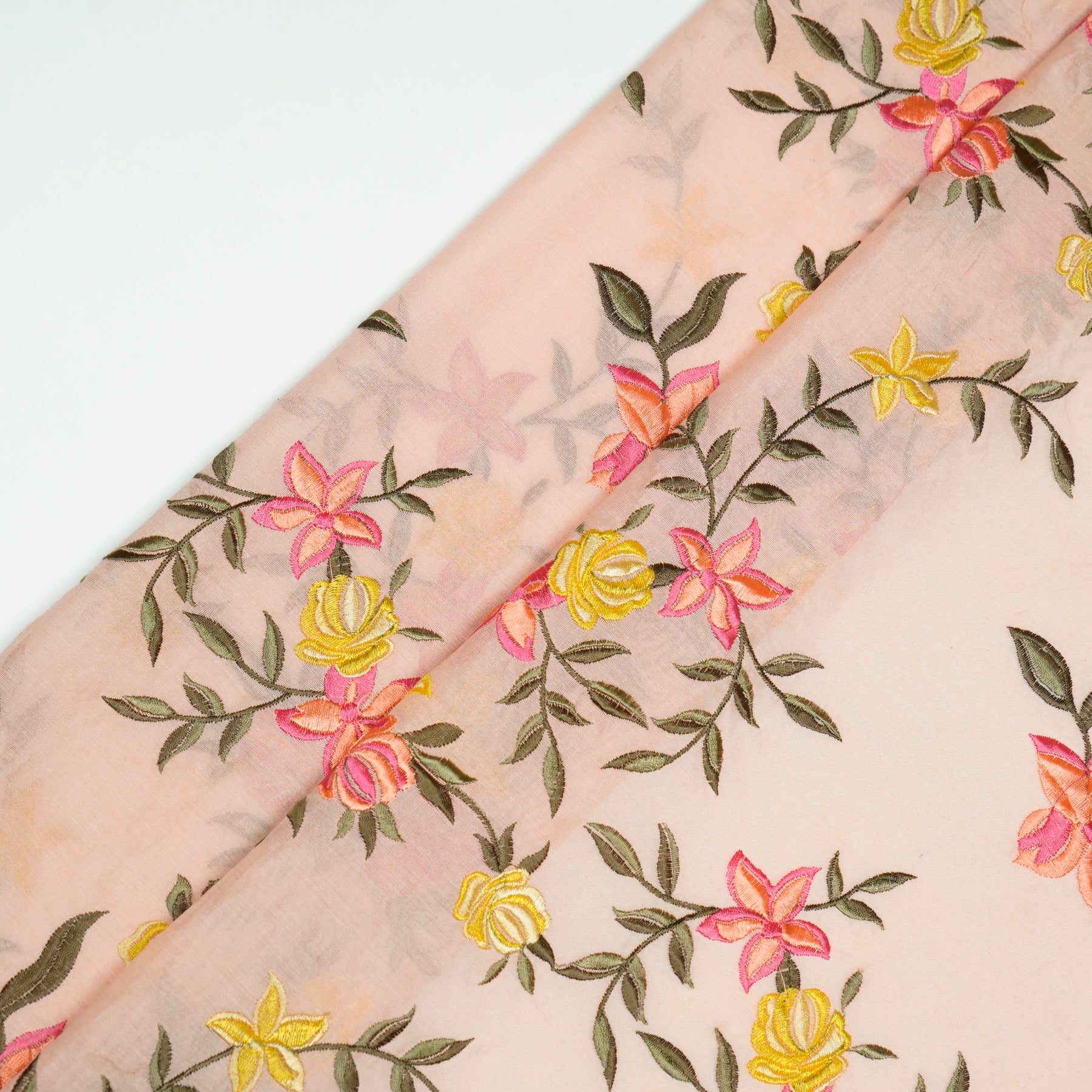Asma Jaal on Light Peach Semi Chanderi Embroidered Fabric