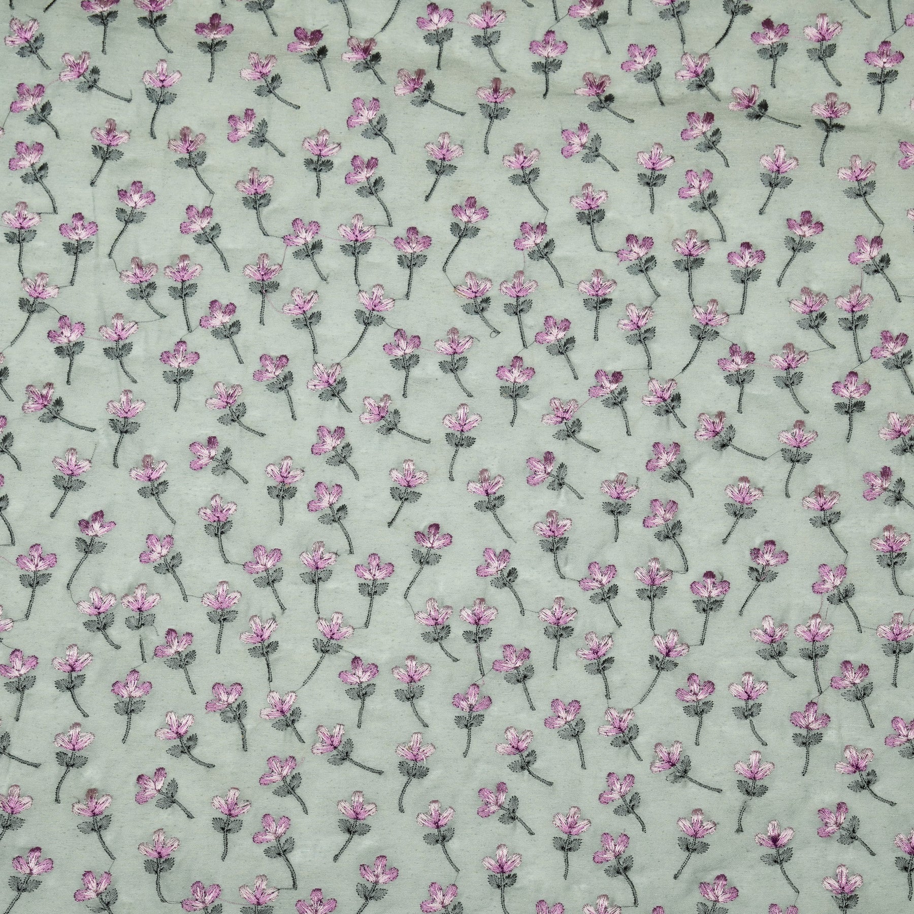 Varsha Buti on Steel /Grey Cotton Linen Embroidered Fabric