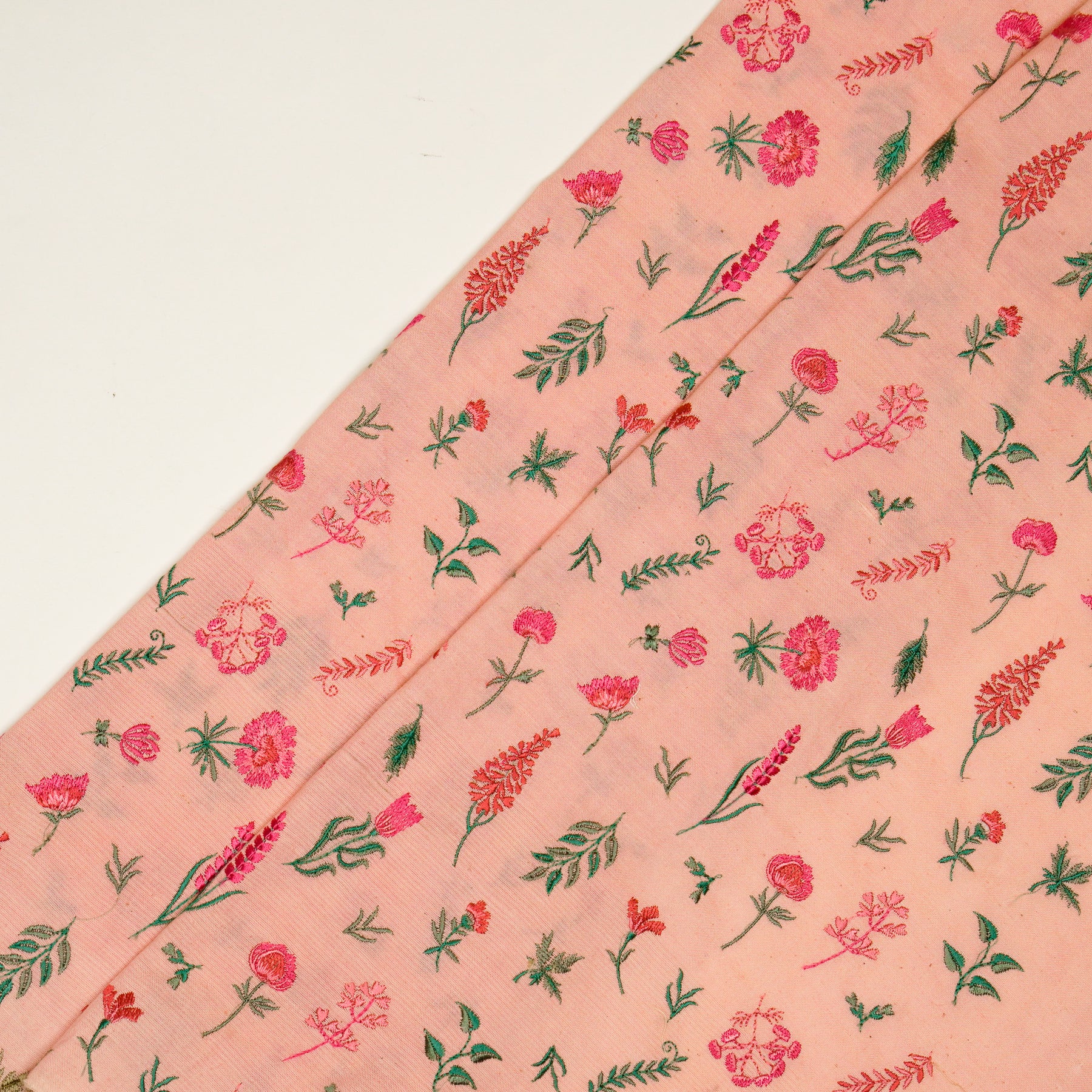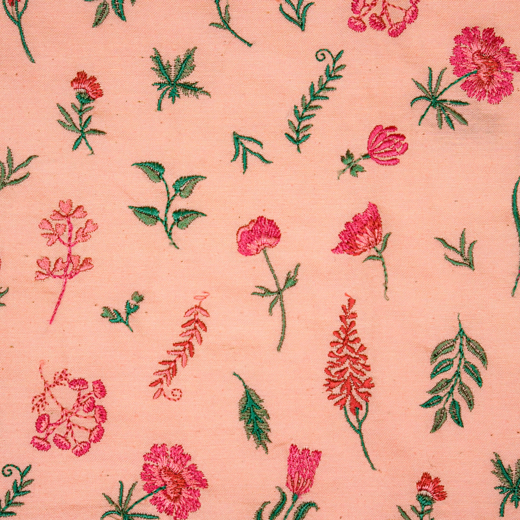 Grishma Buta Buti Mixture on Light/Peach Cotton Linen Embroidered Fabric
