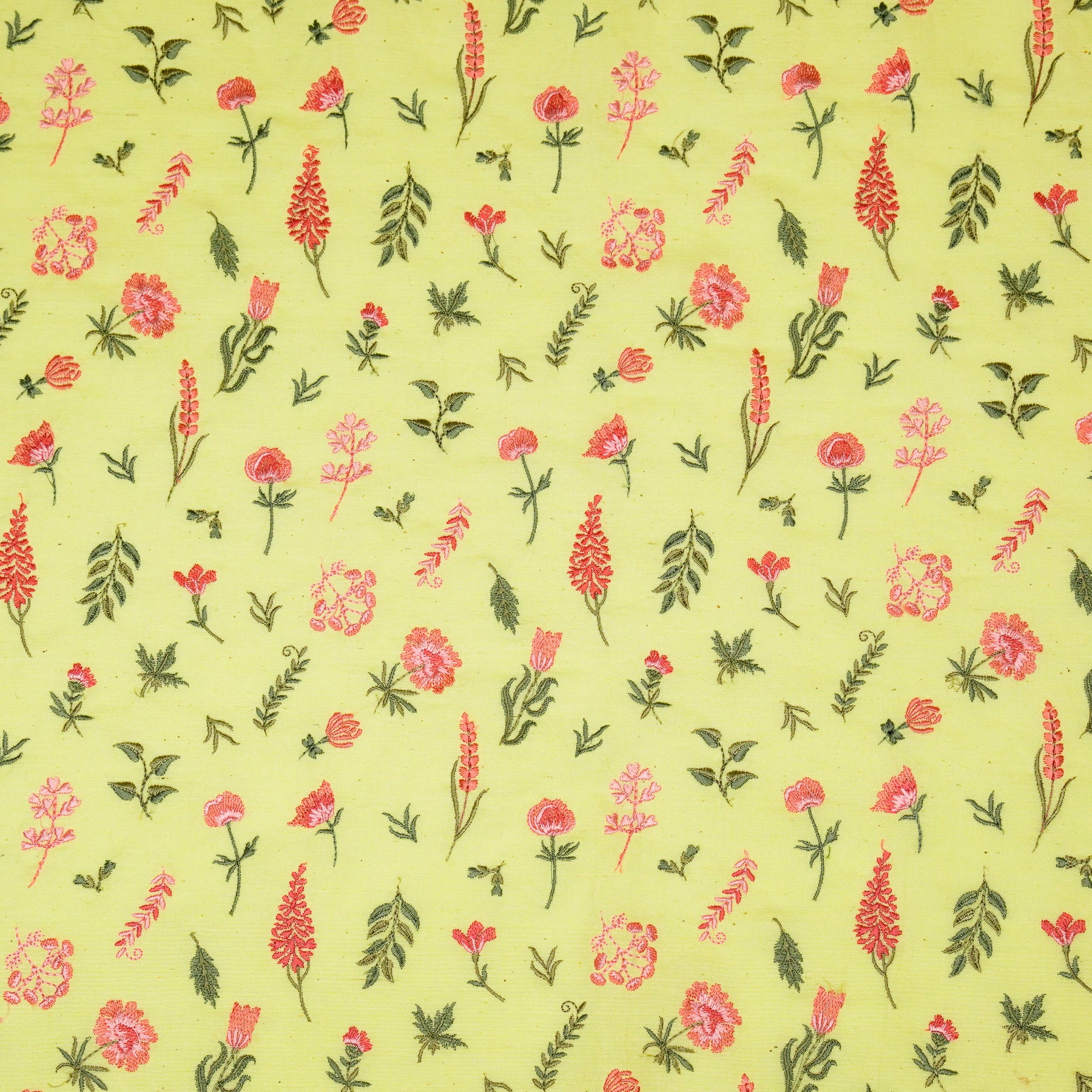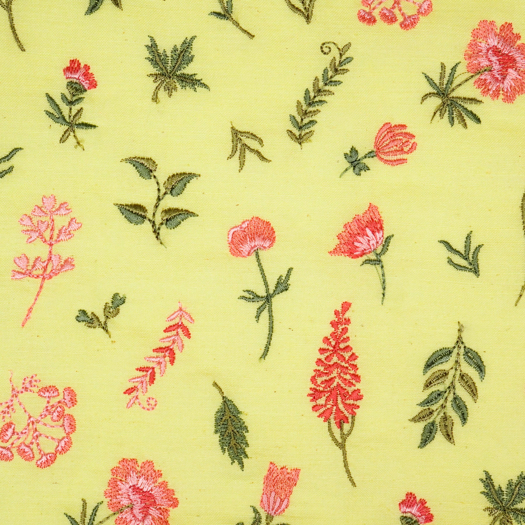 Grishma Buta Buti Mixture on Yellow Cotton Linen Embroidered Fabric