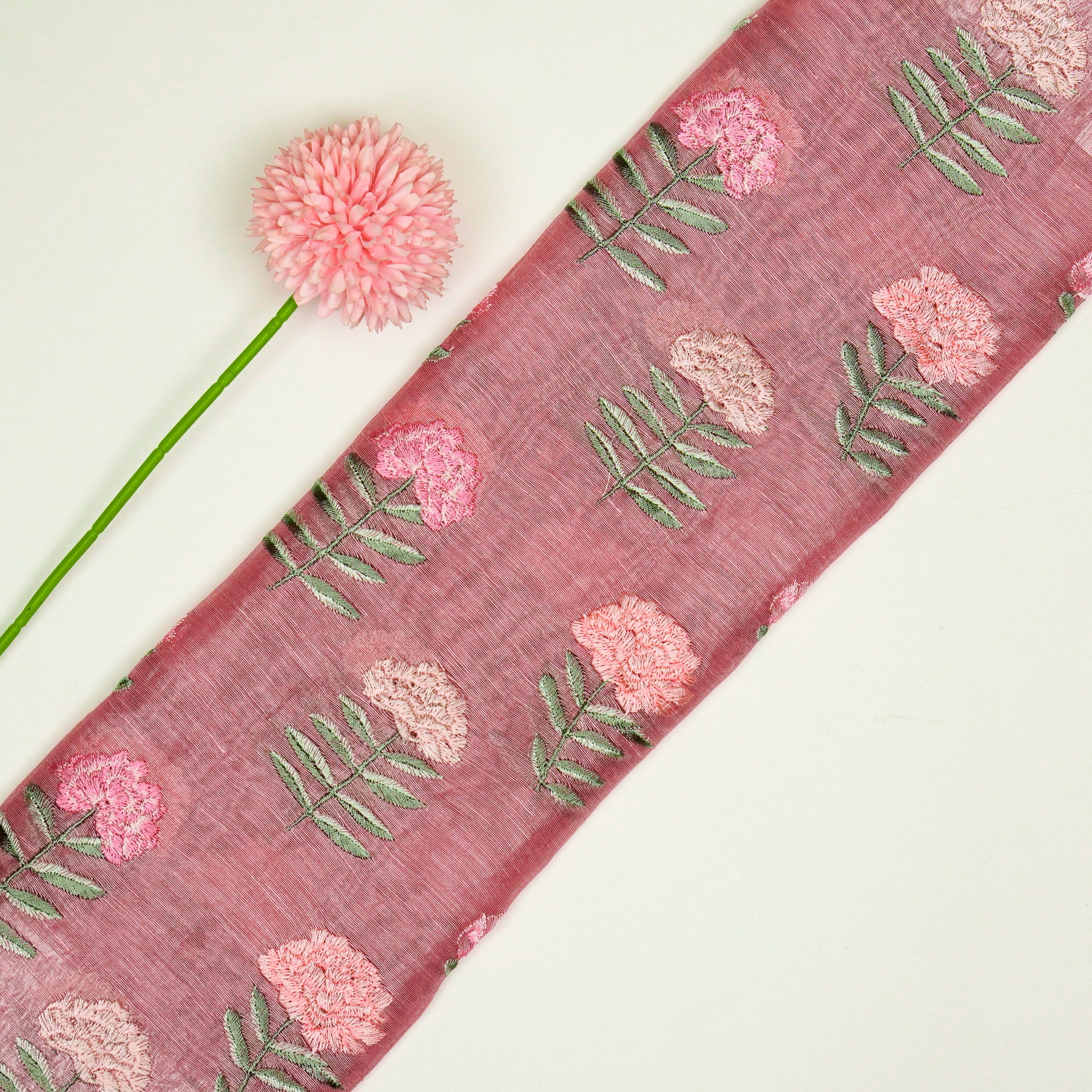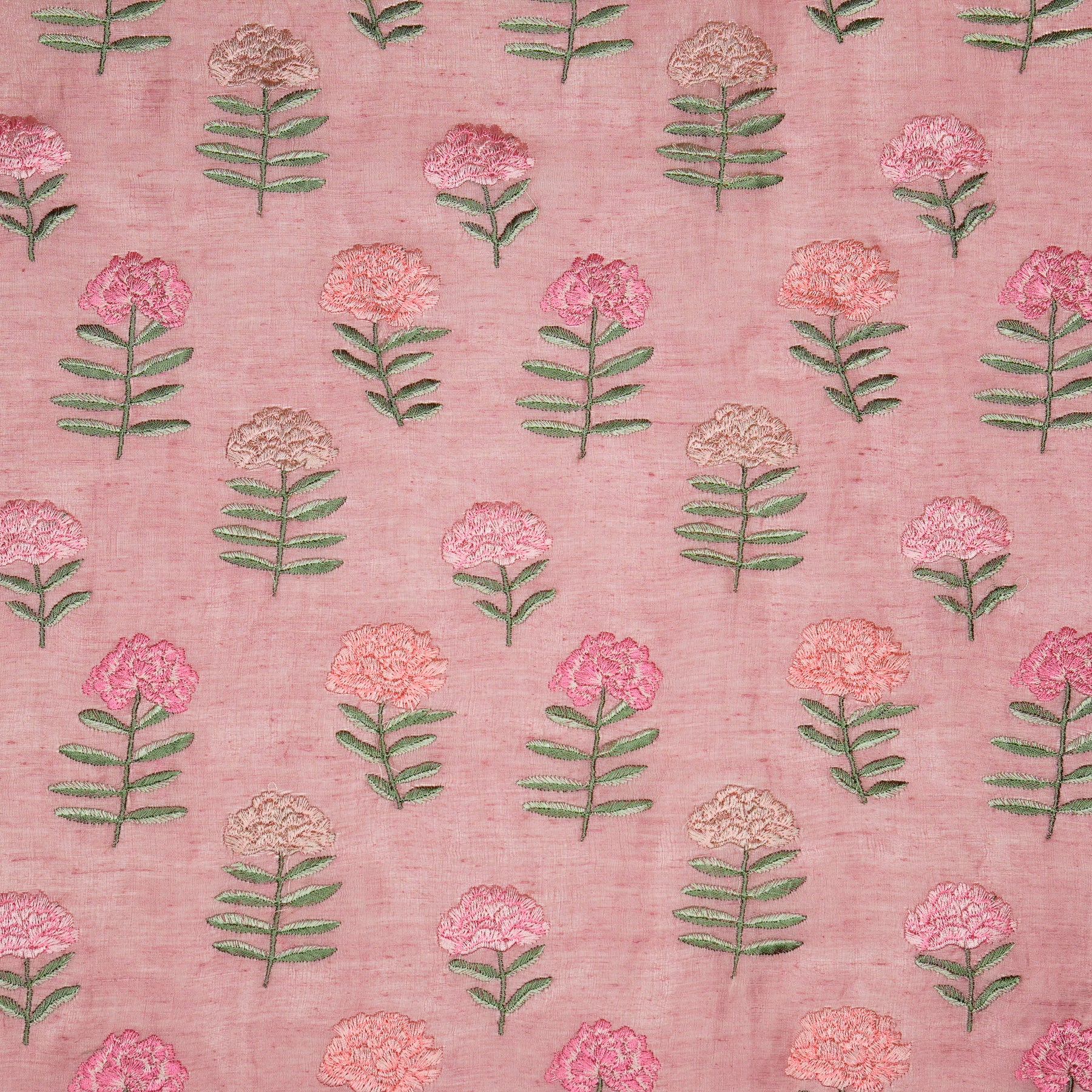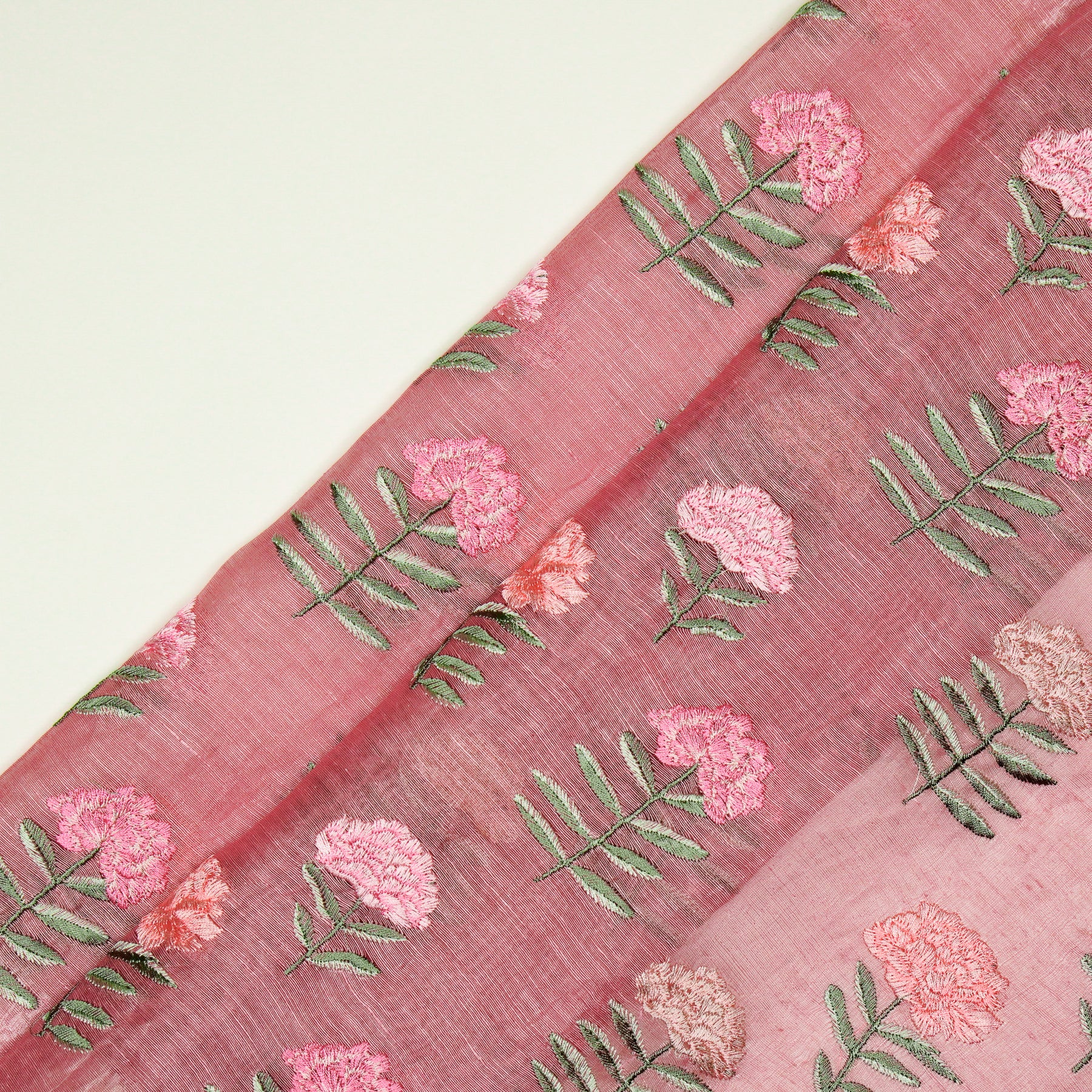 Nayla Buta on Onion/Pink Silk Linen Embroidered Fabric