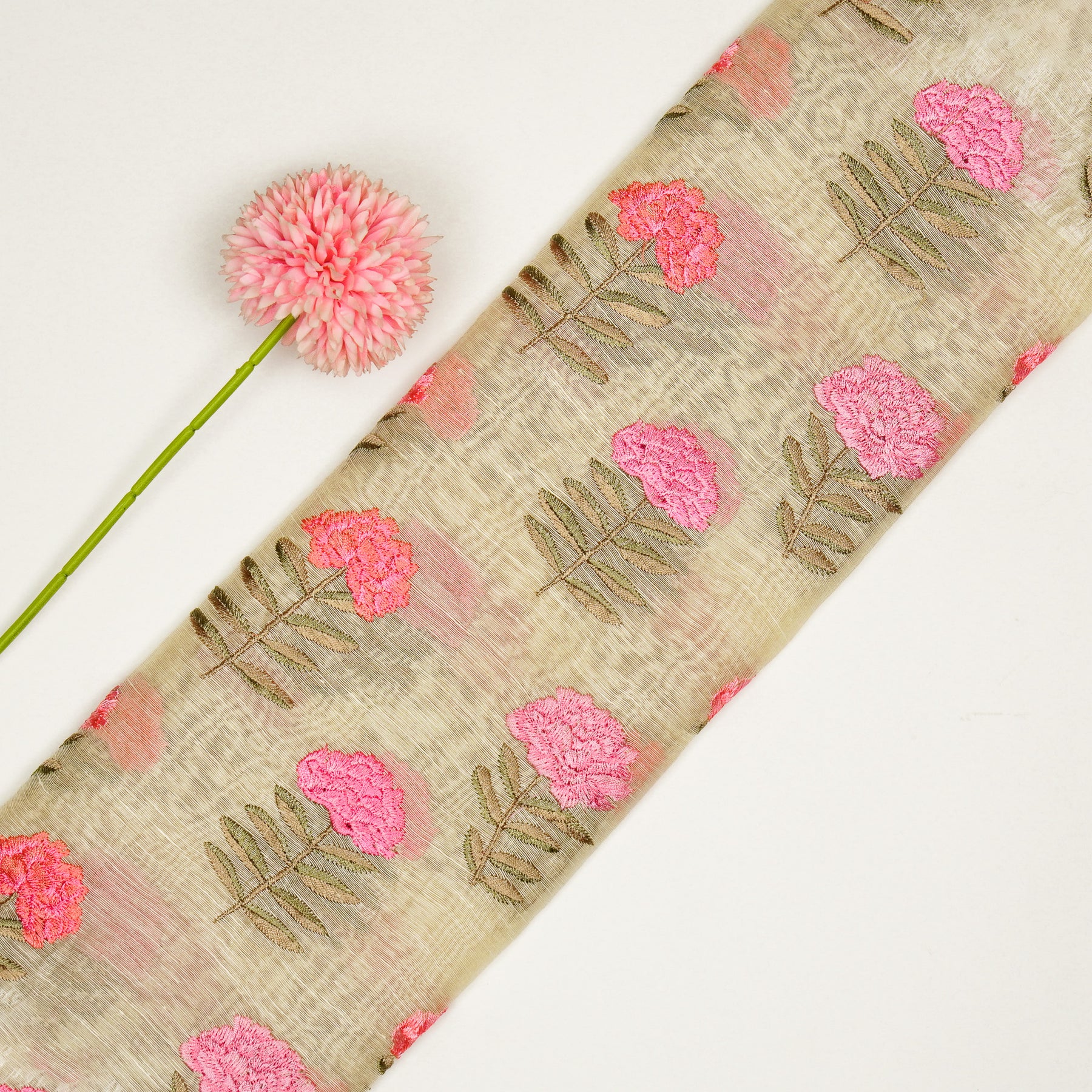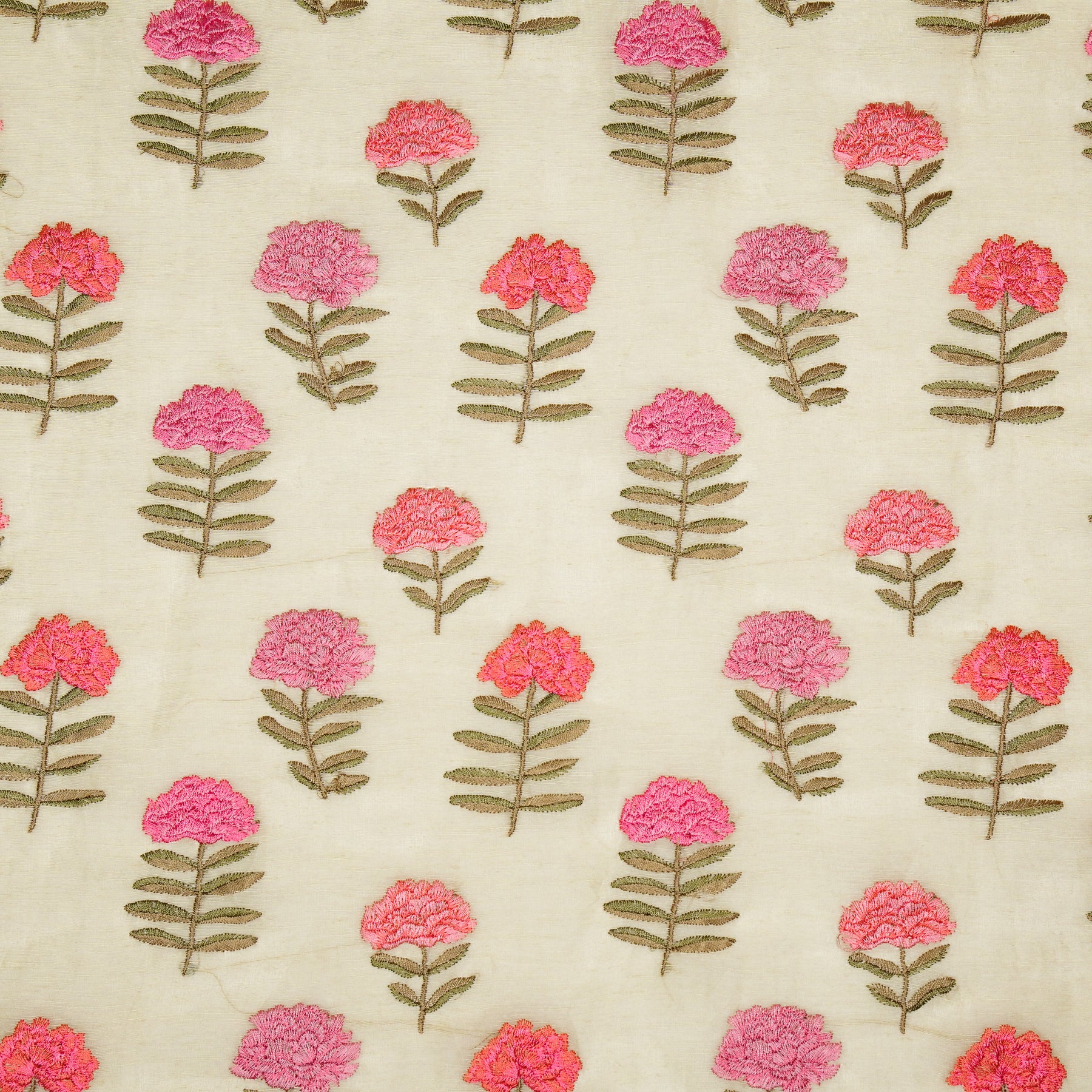 Nayla Buta on Cream Silk Linen Embroidered Fabric