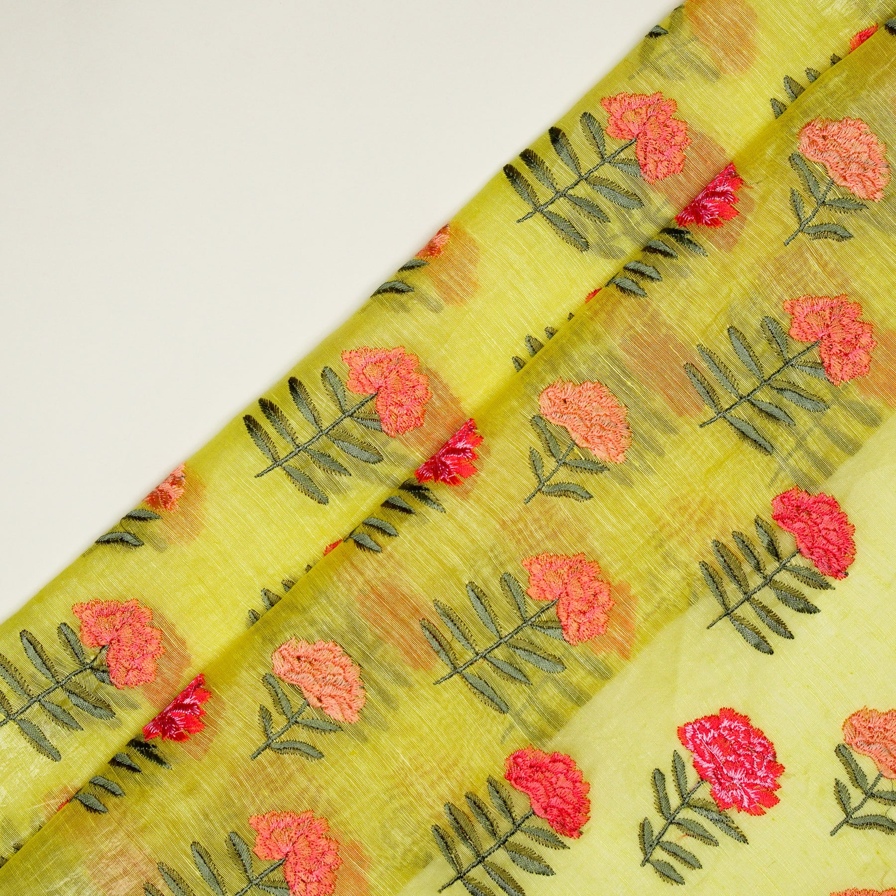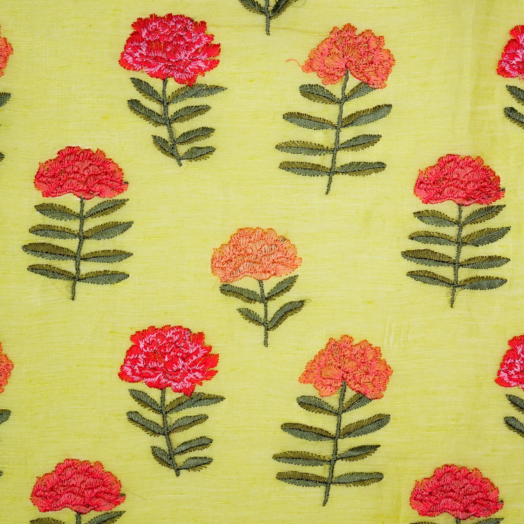 Nayla Buta on Lemon Silk Linen Embroidered Fabric