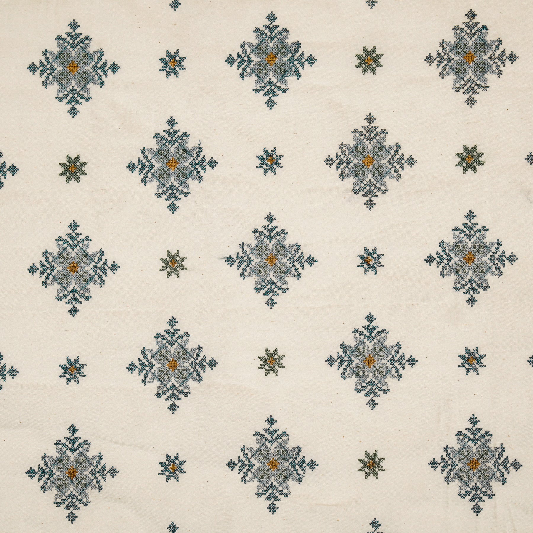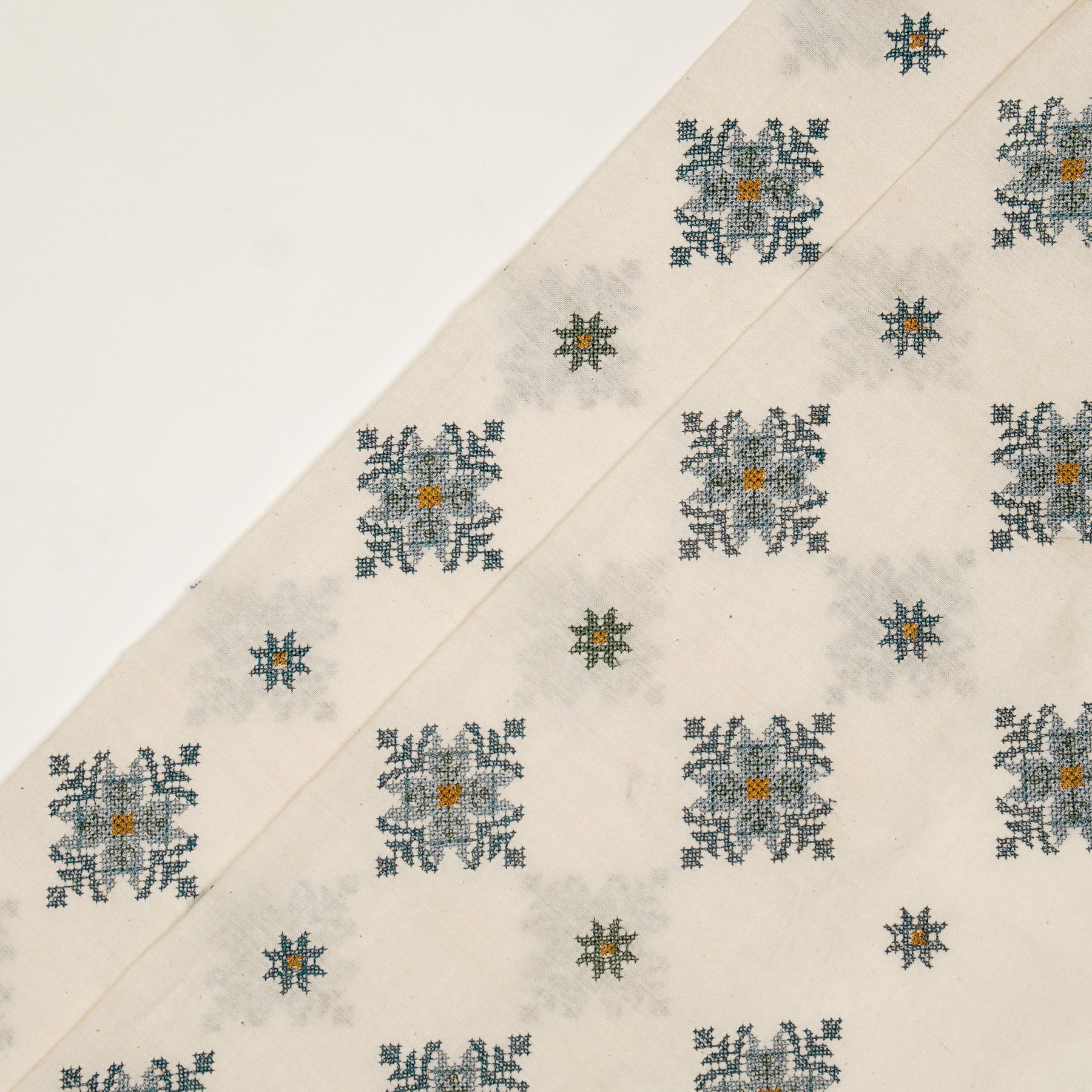 Nilaya Buta Buti Mixture on Cream Cotton Linen Embroidered Fabric