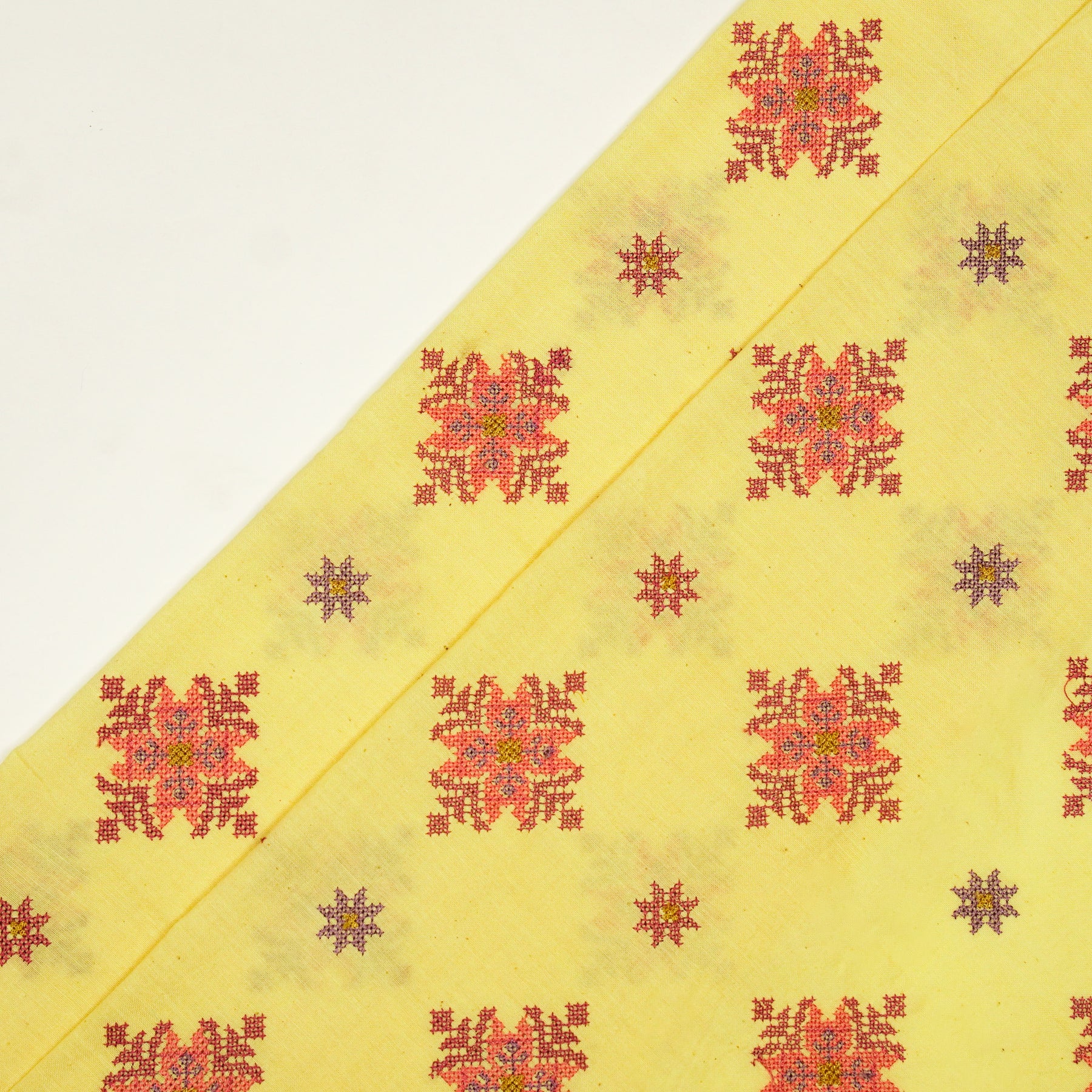Nilaya Buta Buti Mixture on Yellow Cotton Linen Embroidered Fabric