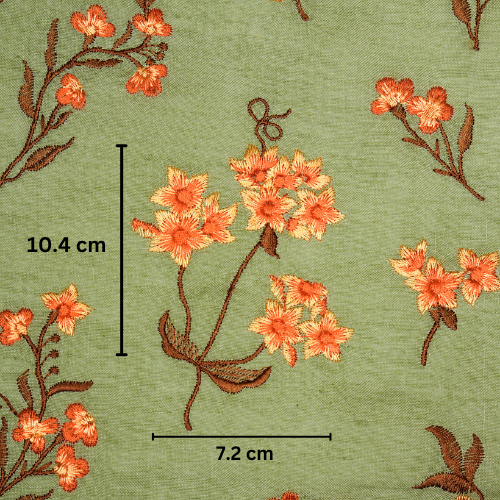 Safiya Buta on Light Olive Cotton Linen Embroidered Fabric