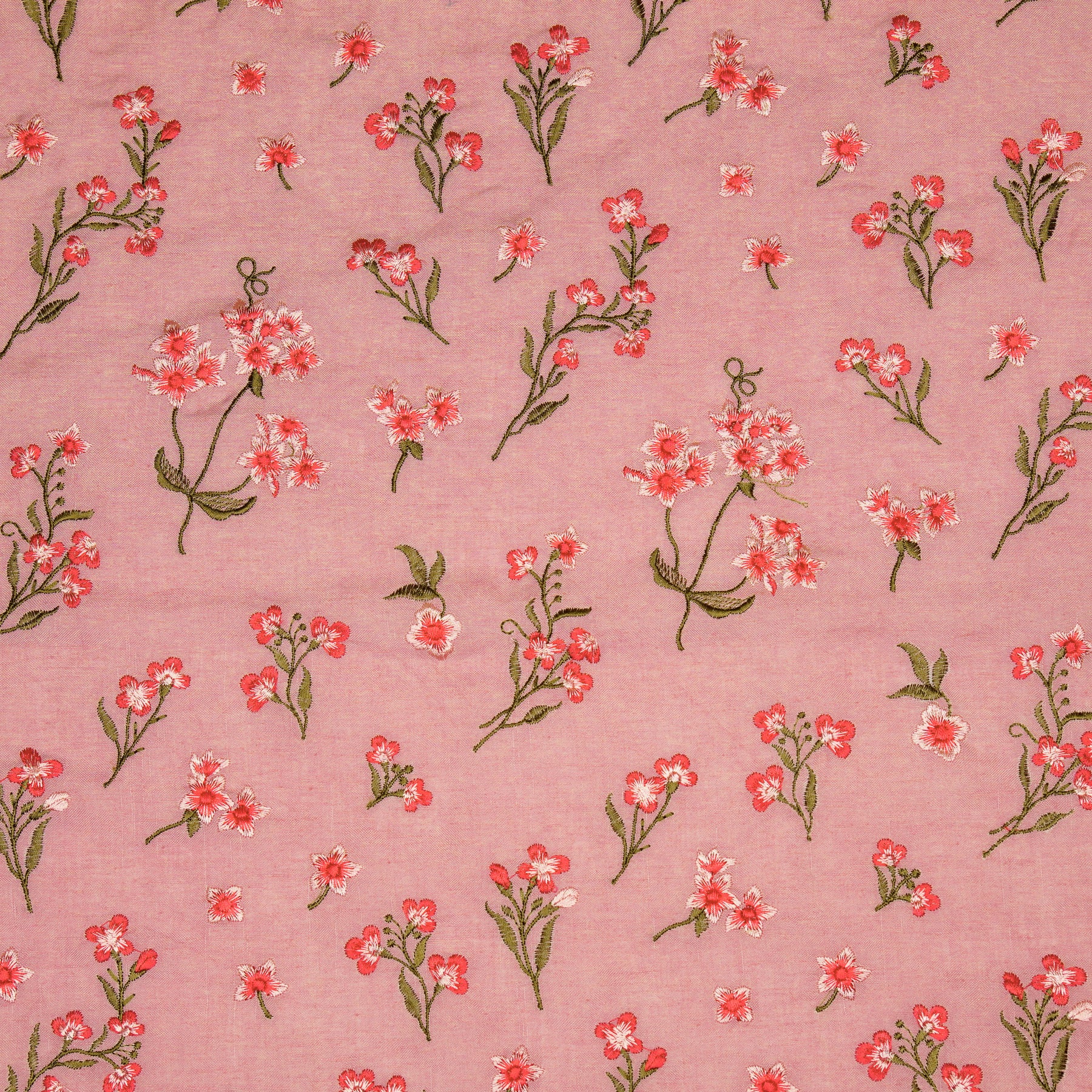 Safiya Buta on Deep Pink Cotton Linen Embroidered Fabric