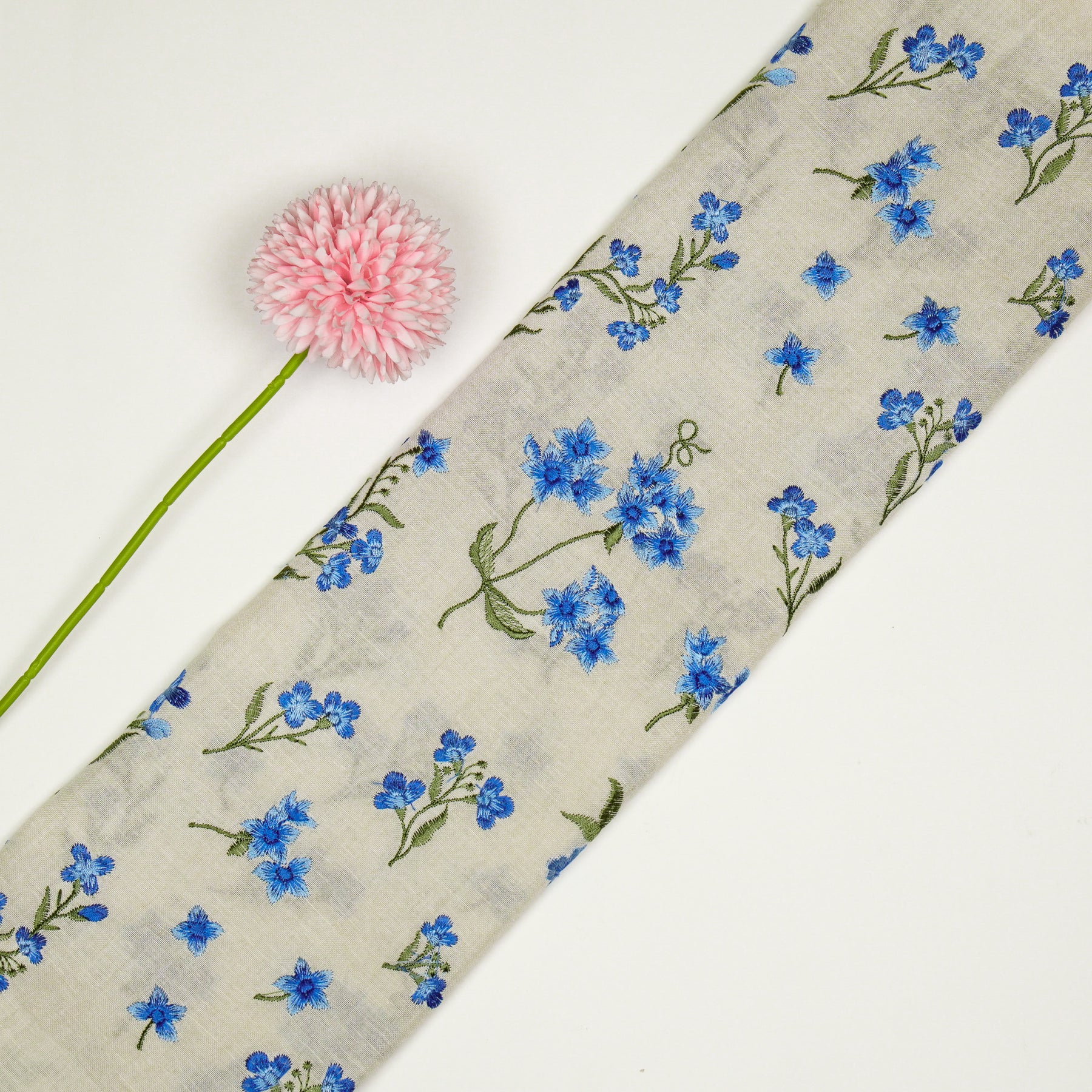 Safiya Buta on Cream Cotton Linen Embroidered Fabric