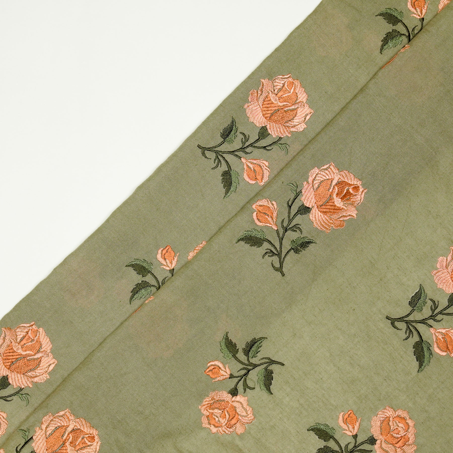 Shaima Buta on Light Olive Cotton Linen Embroidered Fabric