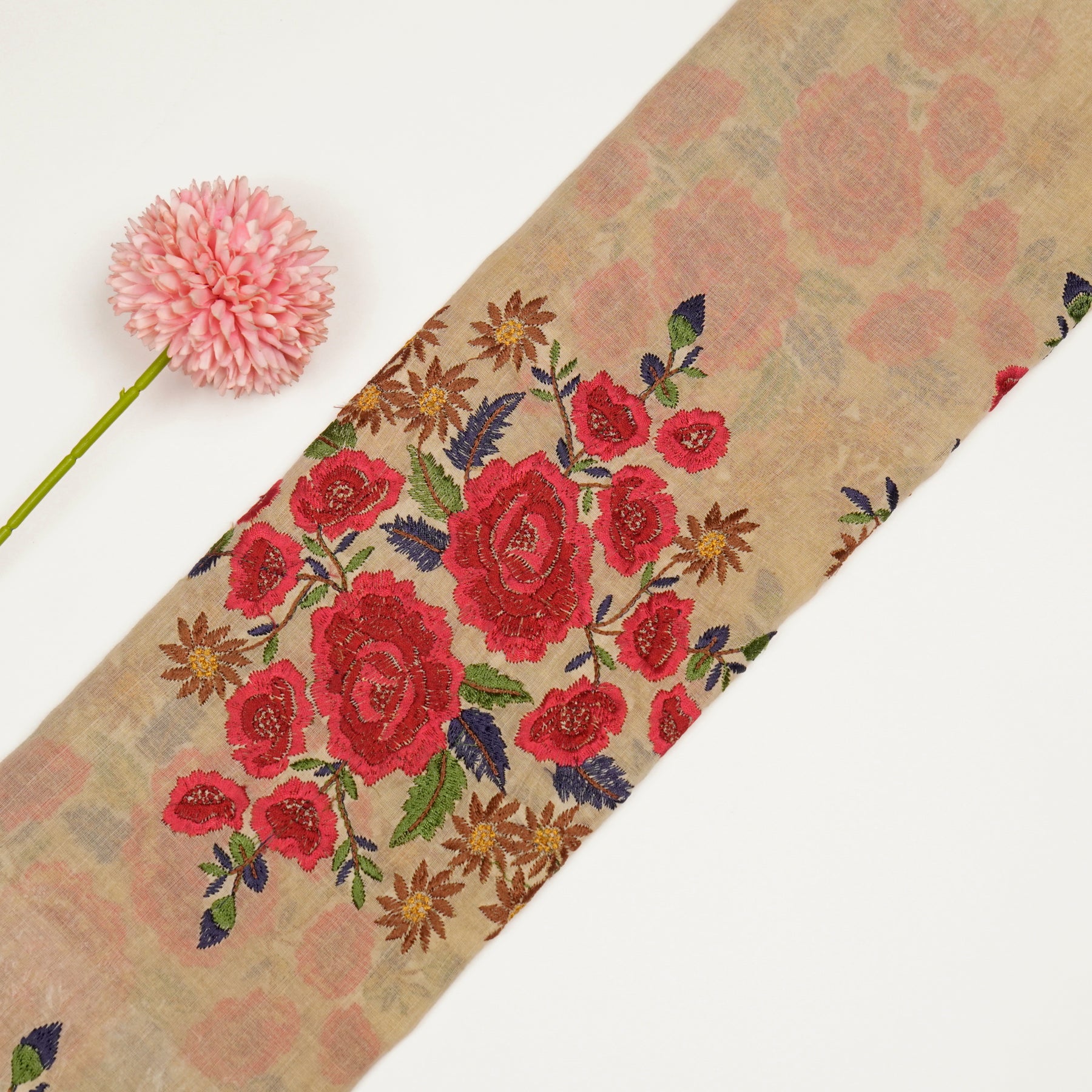 Vasanti Buta on Beige Red Semi Chanderi Embroidered Fabric
