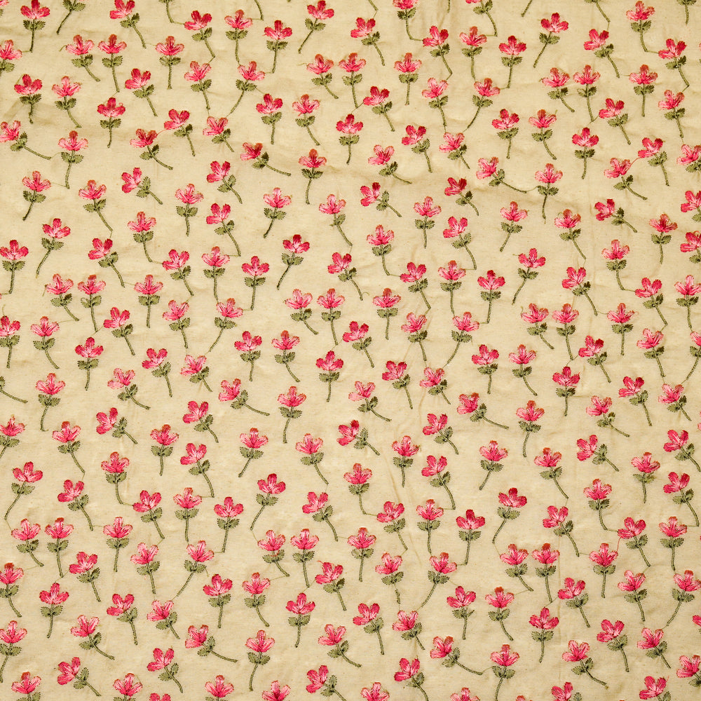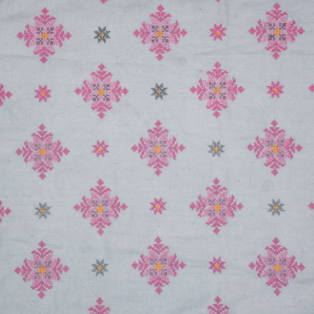 Safiya Buta on Deep Pink Cotton Linen Embroidered Fabric