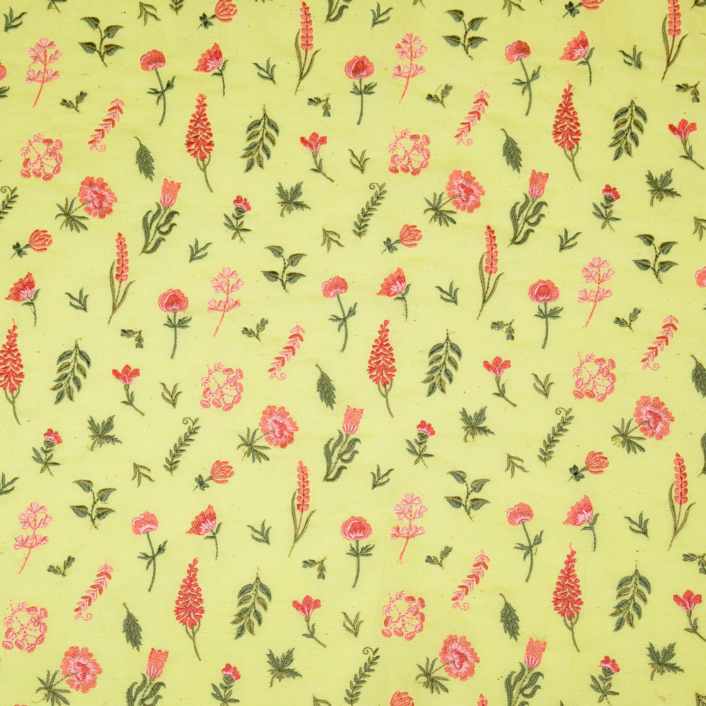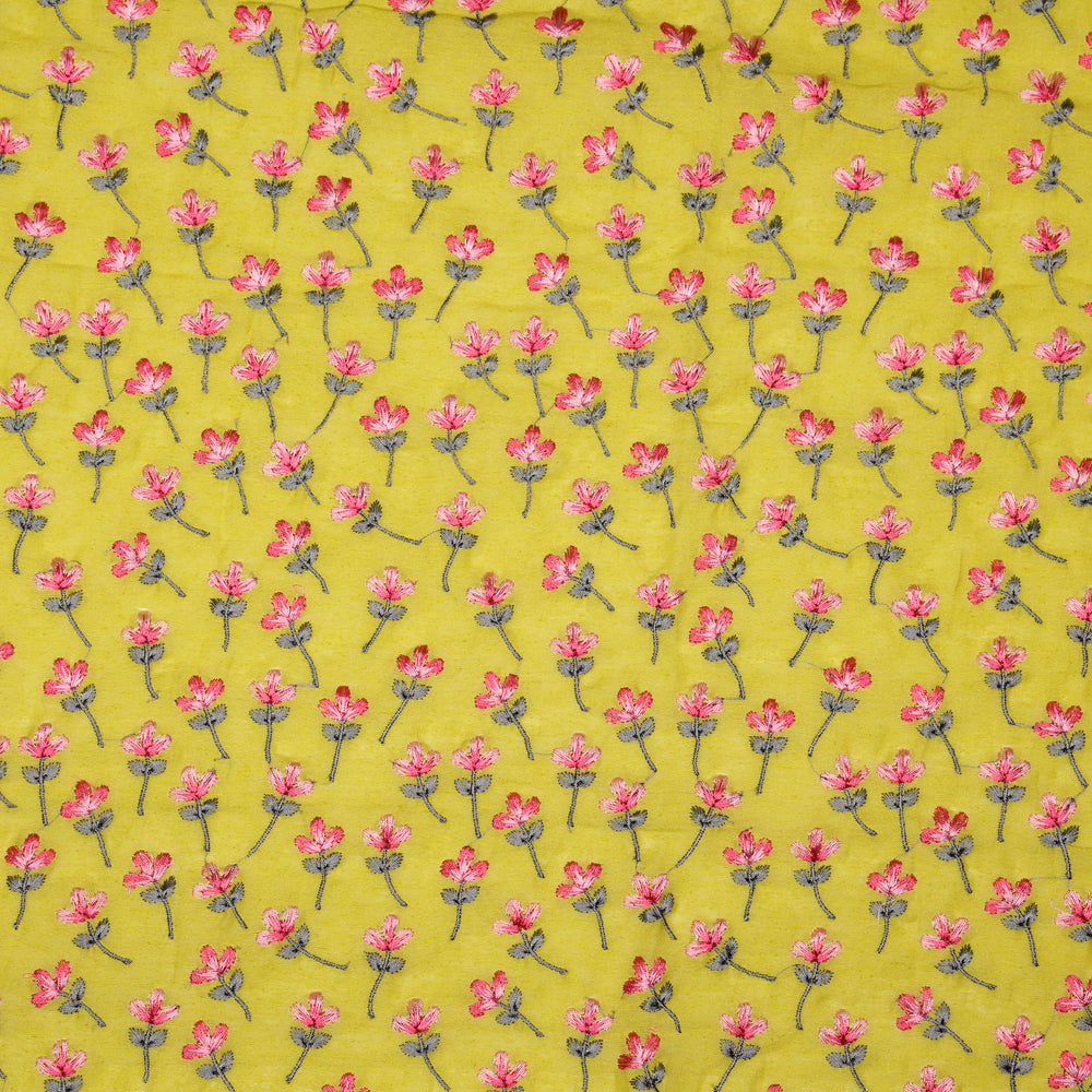 Ayda Buta Buti Mixture on Lemon Cotton Silk Embroidered Fabric