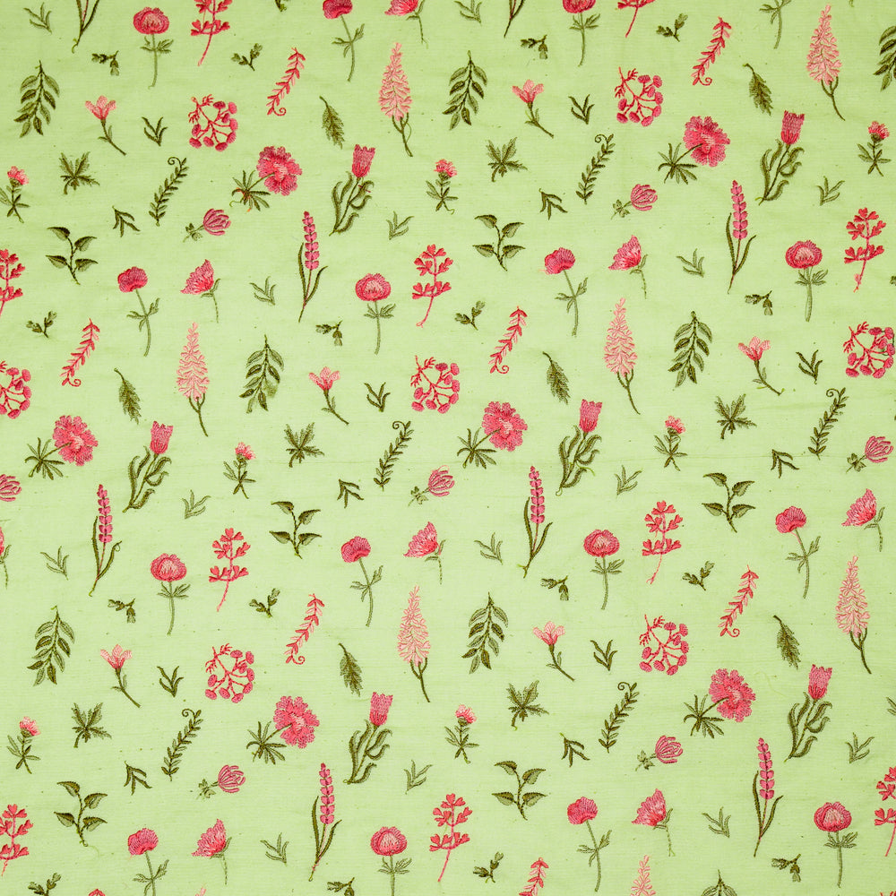 Grishma Buta Buti Mixture on Pista Cotton Linen Embroidered Fabric