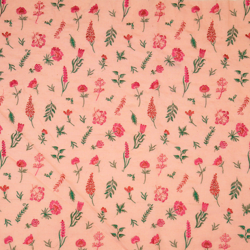 Nilaya Buta Buti Mixture on Peach Cotton Linen Embroidered Fabric