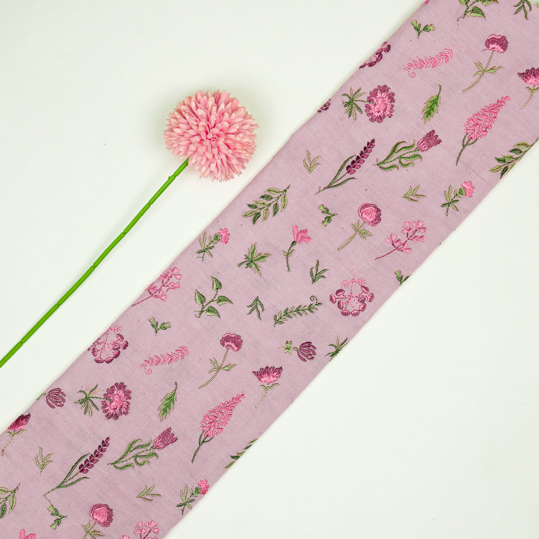 Grishma Buta Buti Mixture on Light/ Mauve Cotton Linen Embroidered Fabric