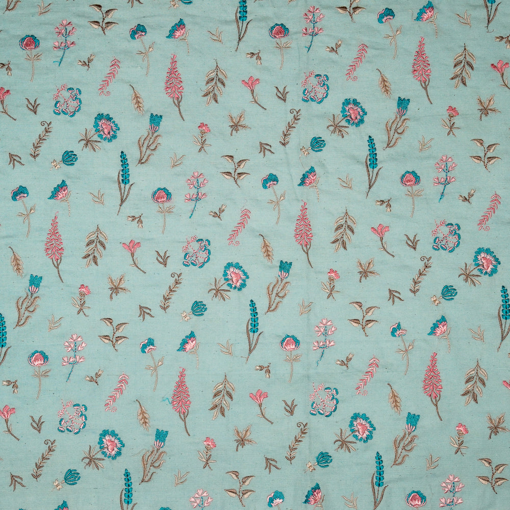 Grishma Buta Buti Mixture on Sky/Blue Cotton Linen Embroidered Fabric
