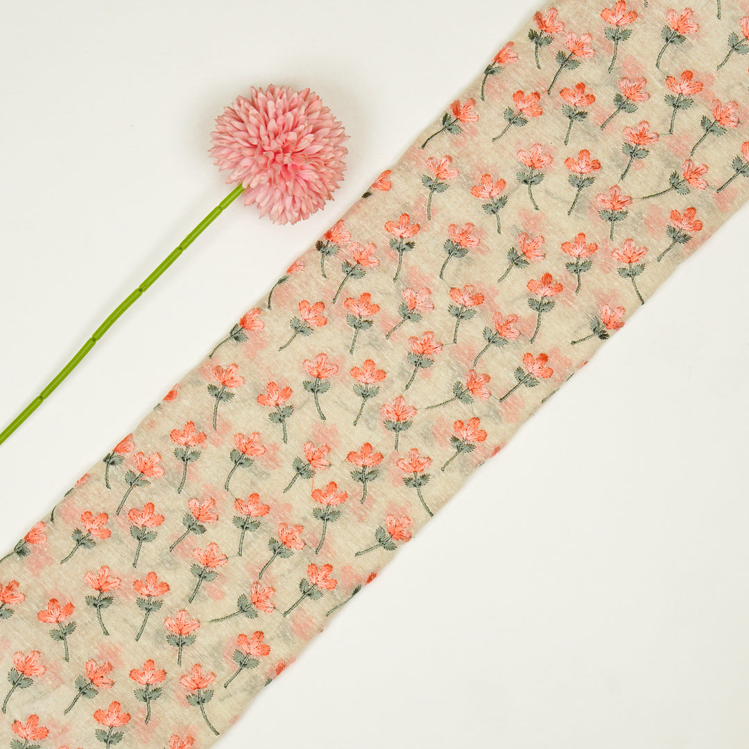 Safiya Buta on Peach Cotton Linen Embroidered Fabric