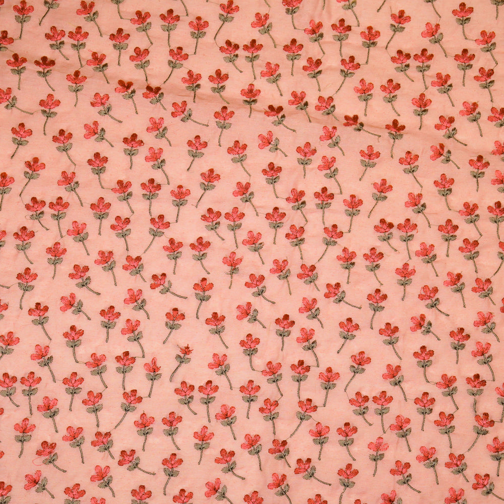 Raneem Jaal on Deep Peach Cotton Silk Embroidered Fabric