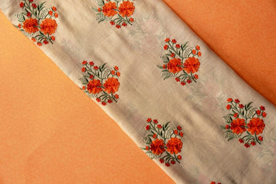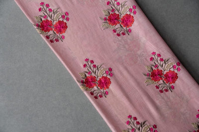 Rose of Sharon Buta on Light Peach Silk Chanderi