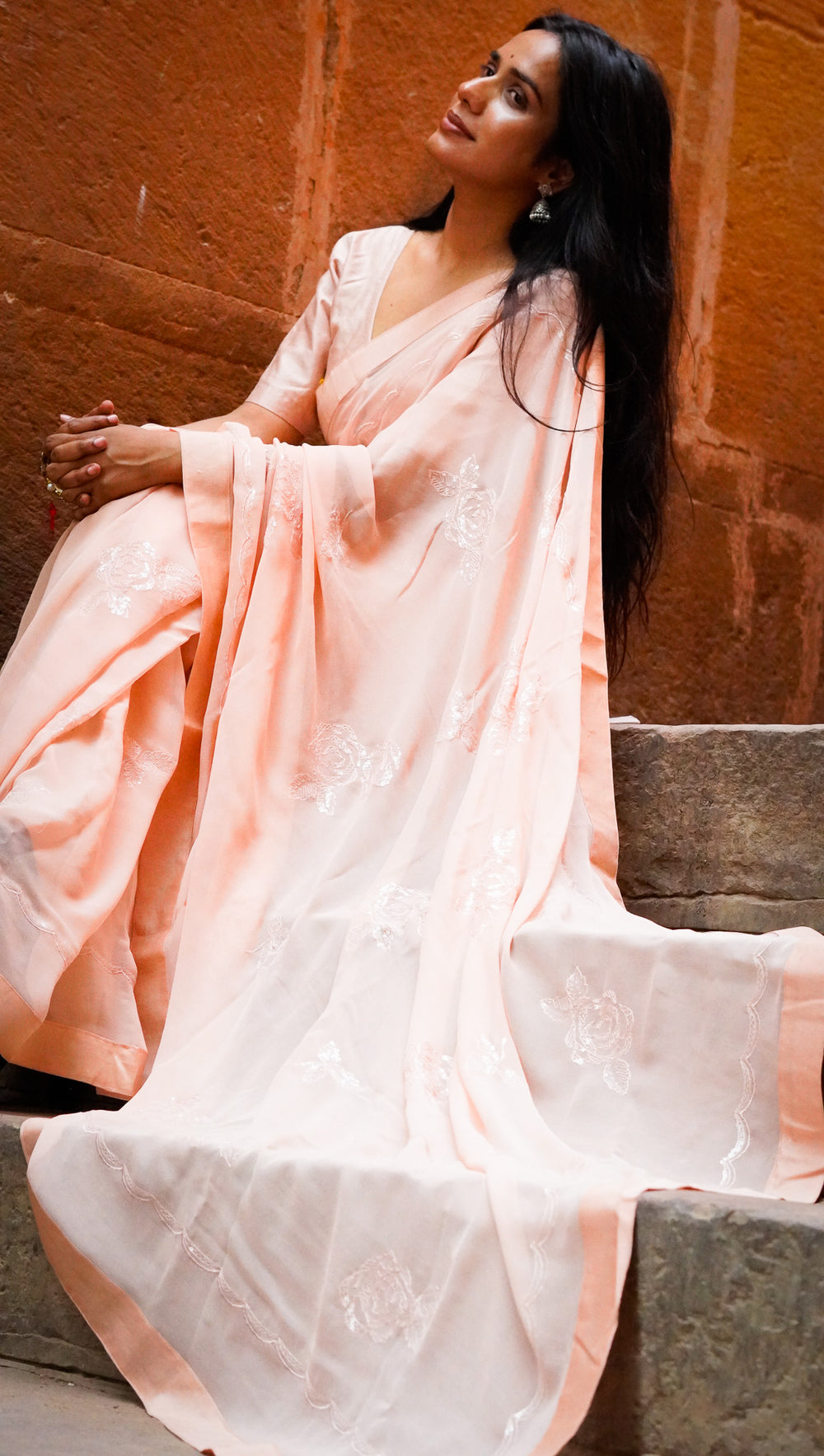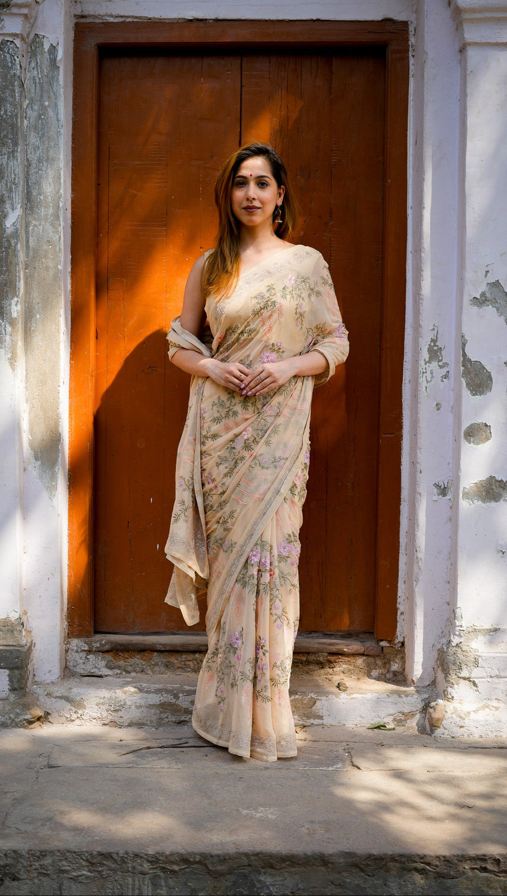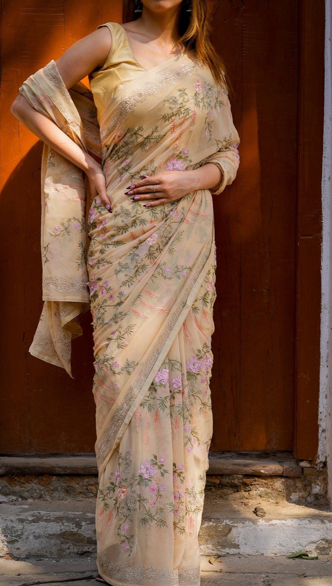 Have a look at to our embroidered sarees with collection. Every single piece is made with care, featuring intricate designs and delicate thread work that embodies eternal craftsmanship.