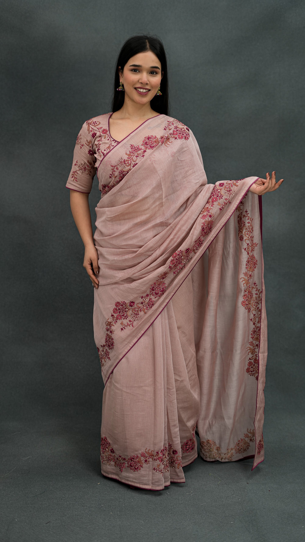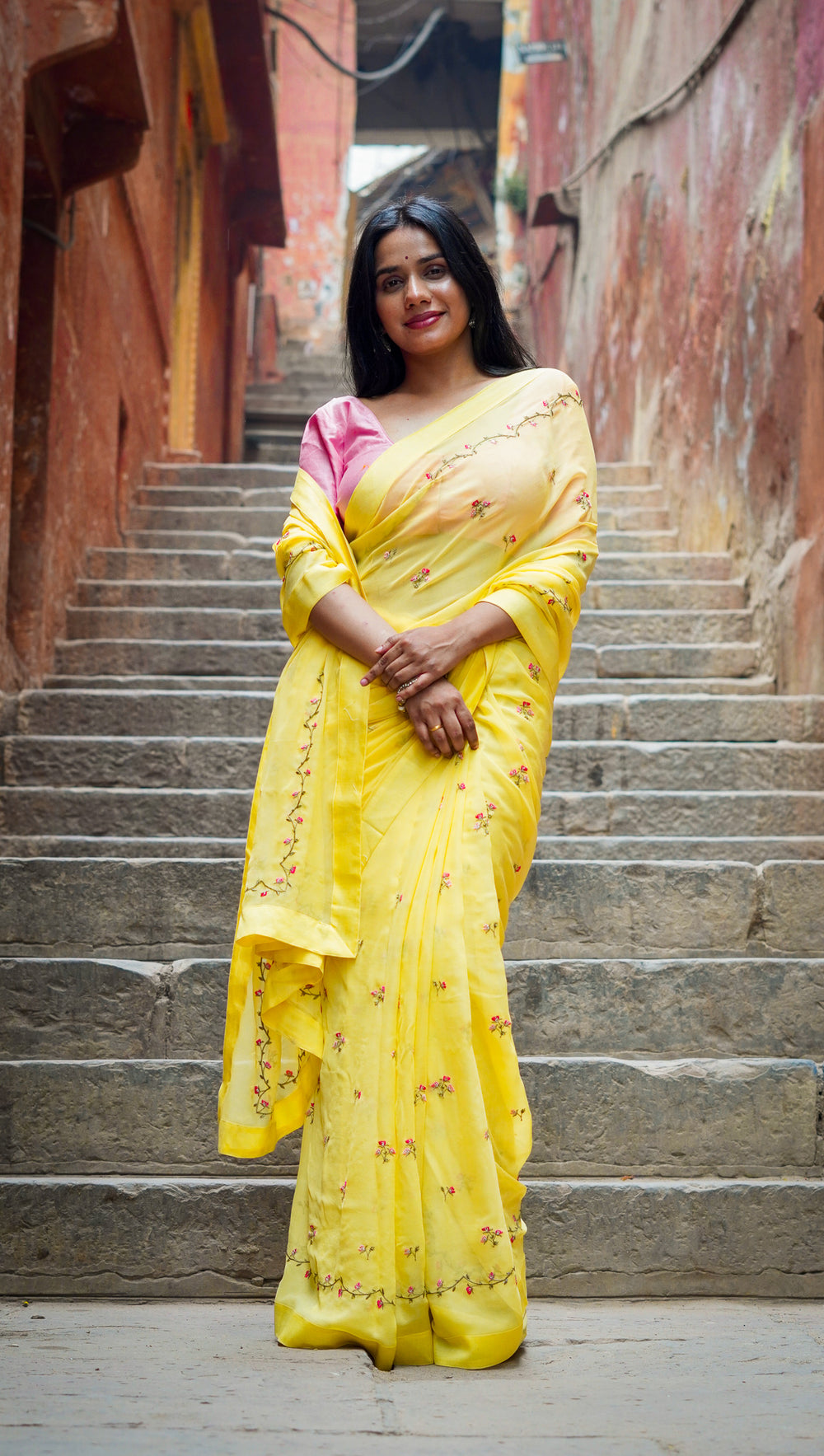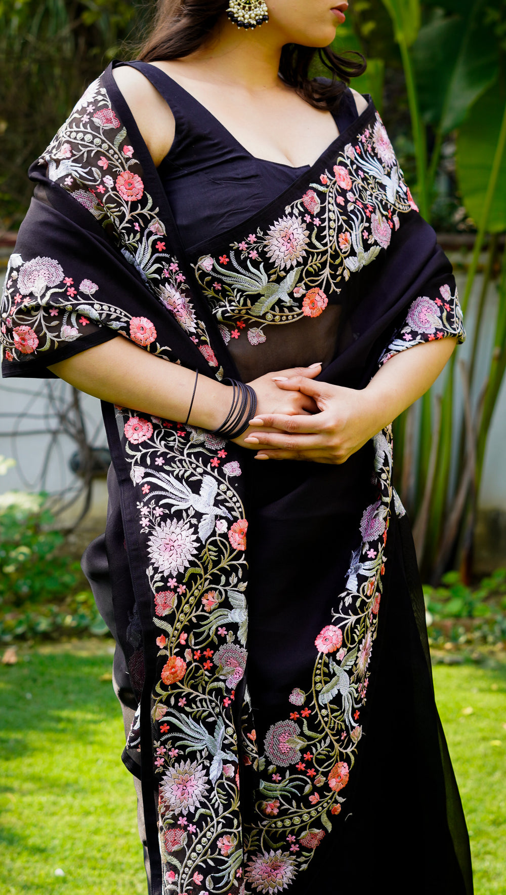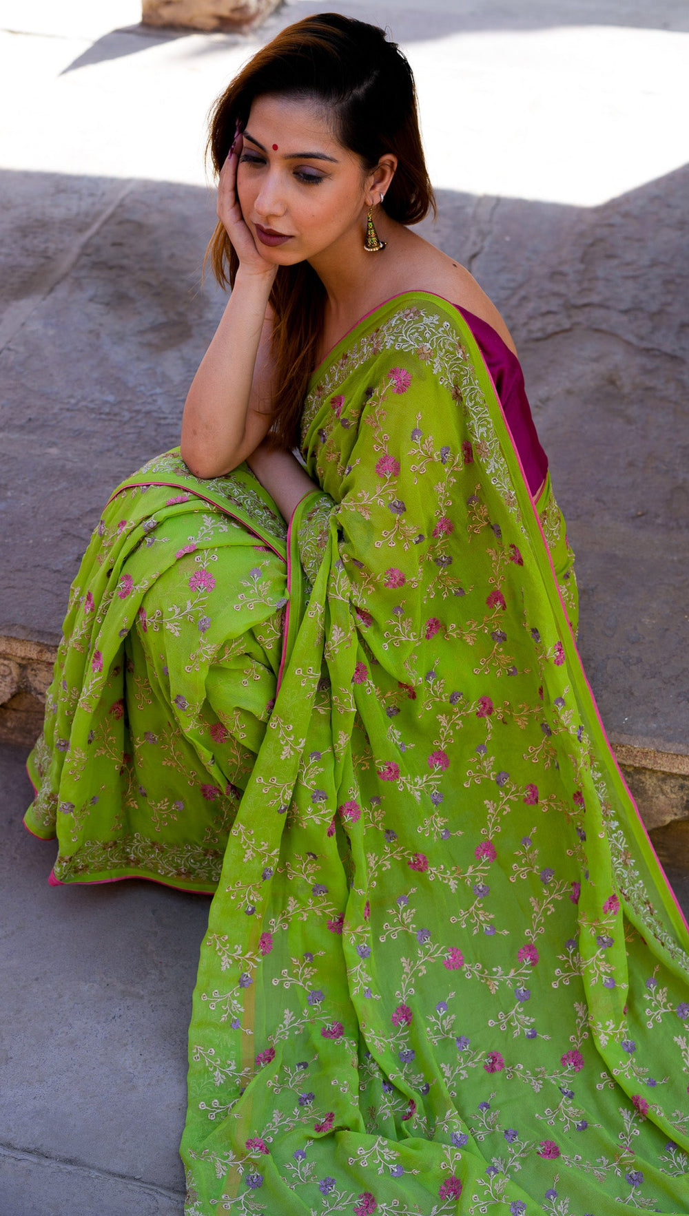 Have a look at to our embroidered sarees with collection. Every single piece is made with care, featuring intricate designs and delicate thread work that embodies eternal craftsmanship.