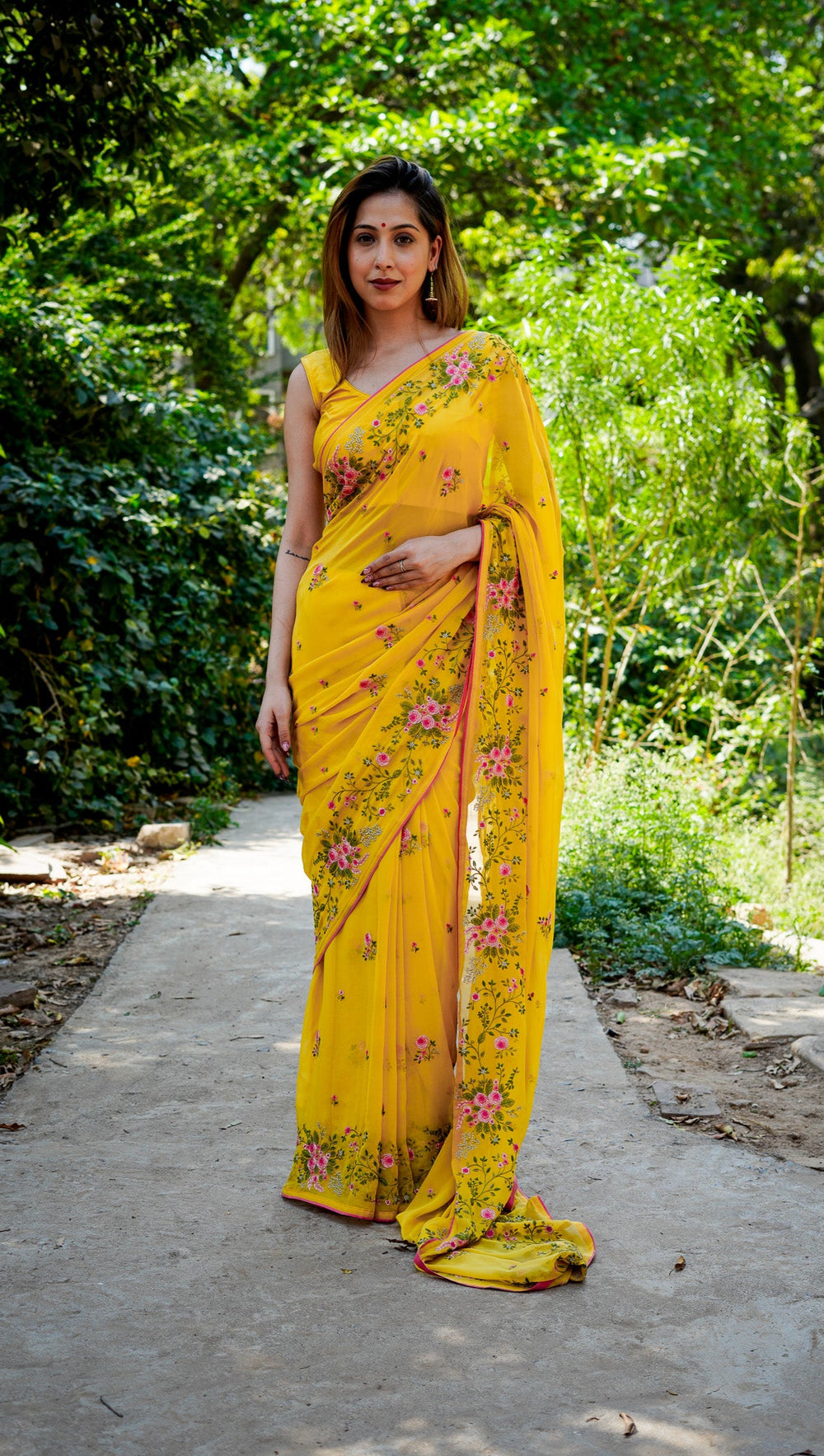 Embroidered sarees are adorned with decorative stitching, beadwork, or thread designs that provide texture and elegance. Their rich, handcrafted nature makes them popular for both festive and formal attire.