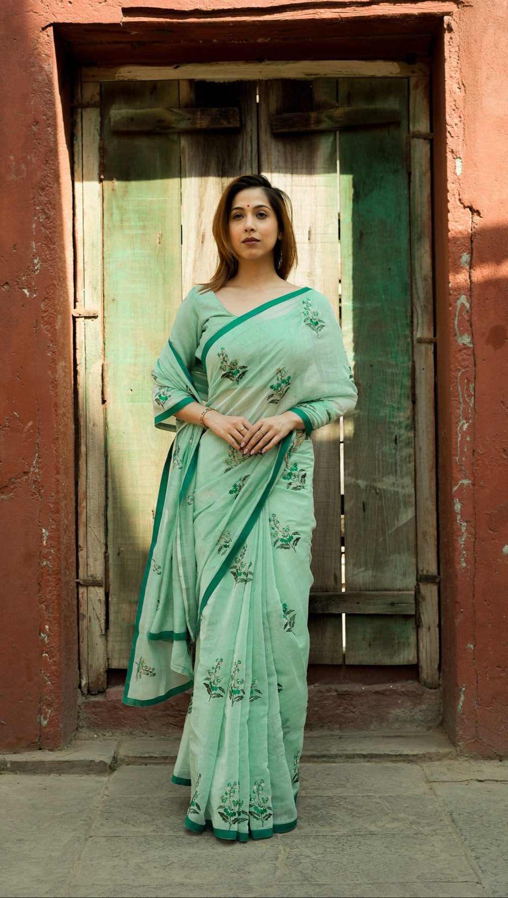For grand occasions, straight woven silk saree have luxurious finish and glossy look. A hand embroiled cotton saree gives ease, breeze, and is perfect for daily elegance or warm weather wear.