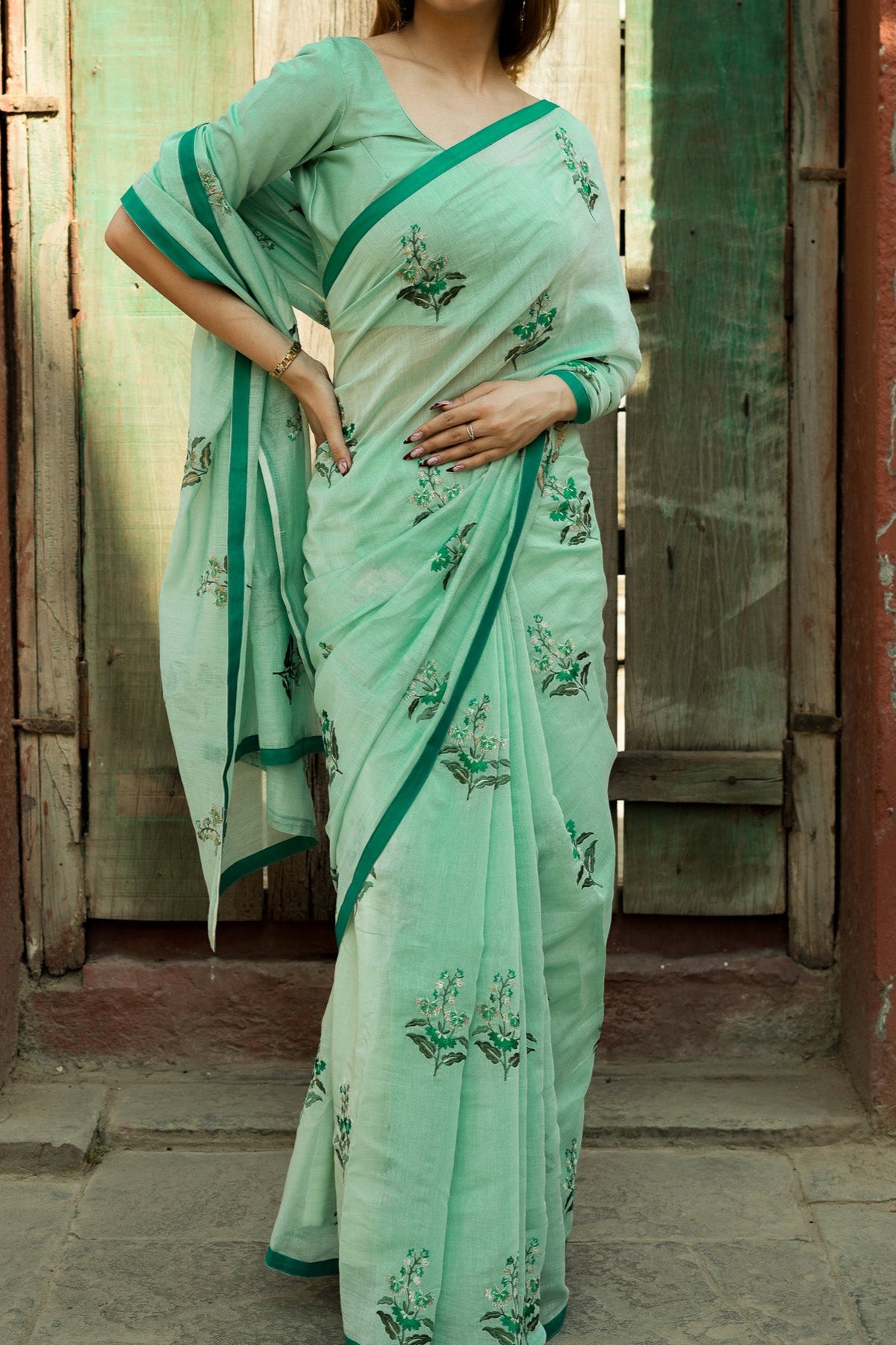 Shayra Embroidered Saree on Light Mint Cotton Silk