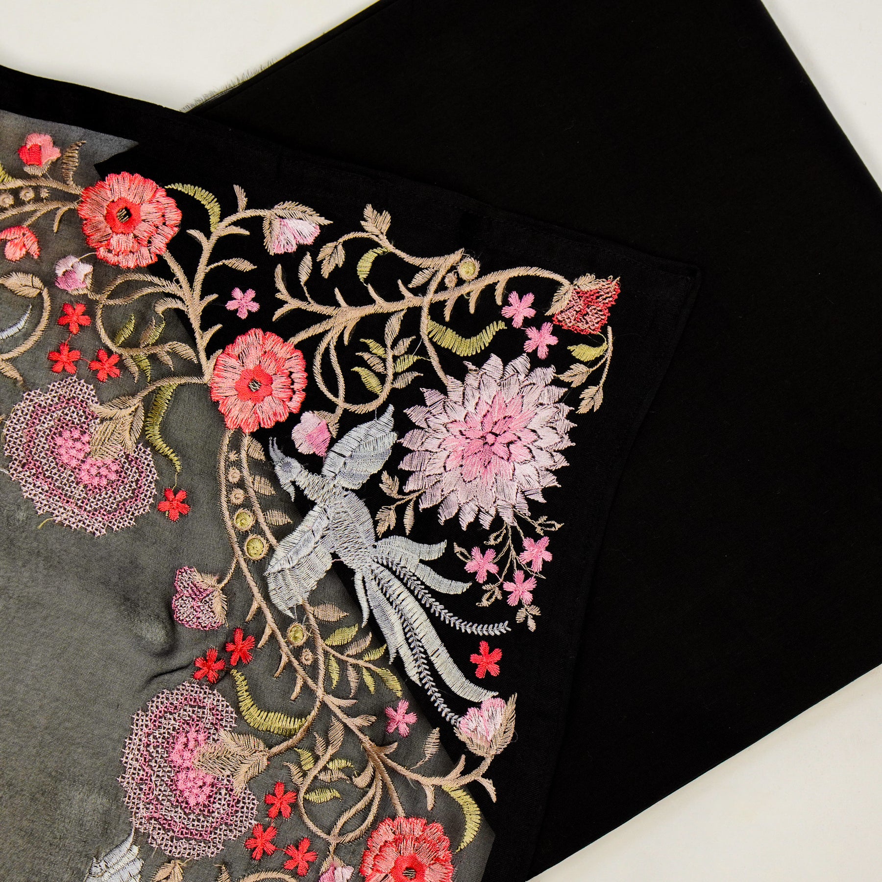 Qareena Embroidered Saree on Black Pure Silk Organza