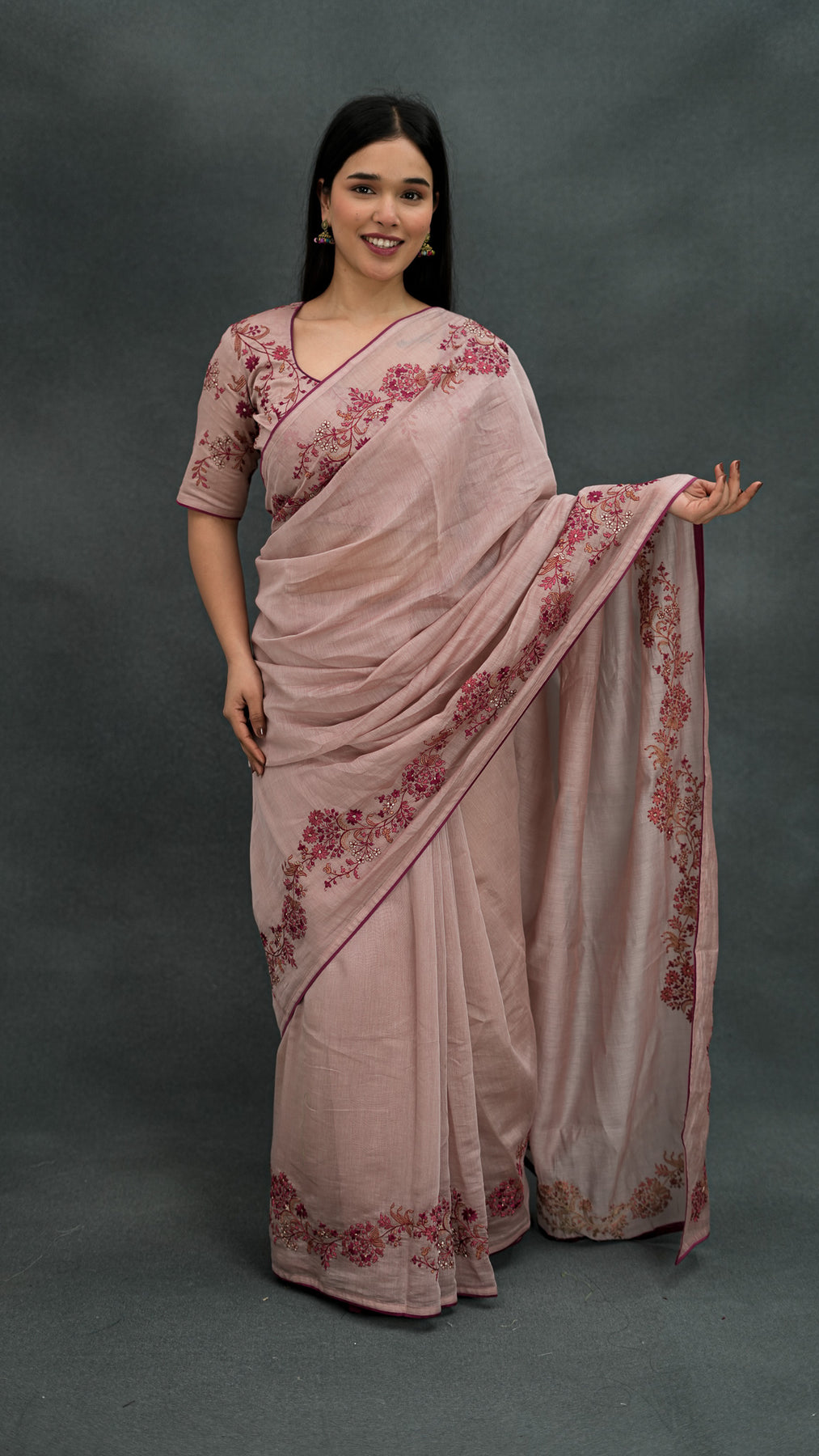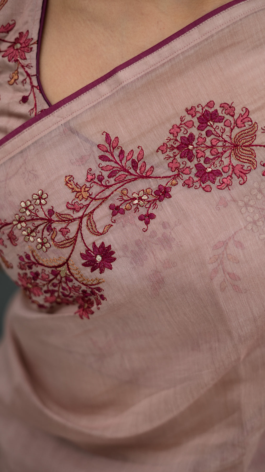 Rasmiya Embroidered Saree on Blush Cotton Silk