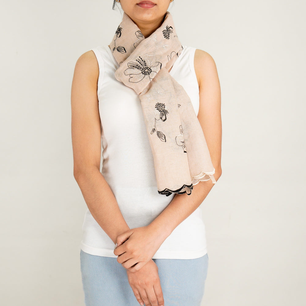 Tulika Jaal on Cream Malmal Embroidered Fabric