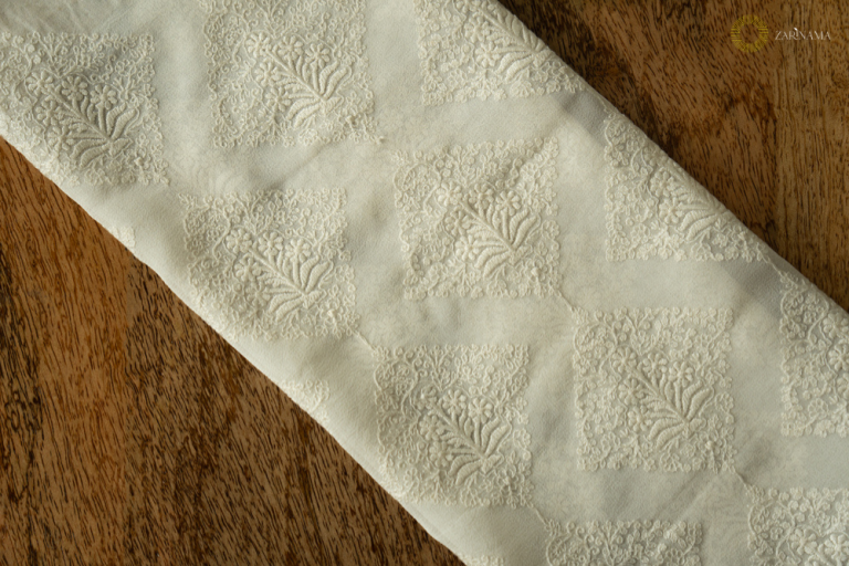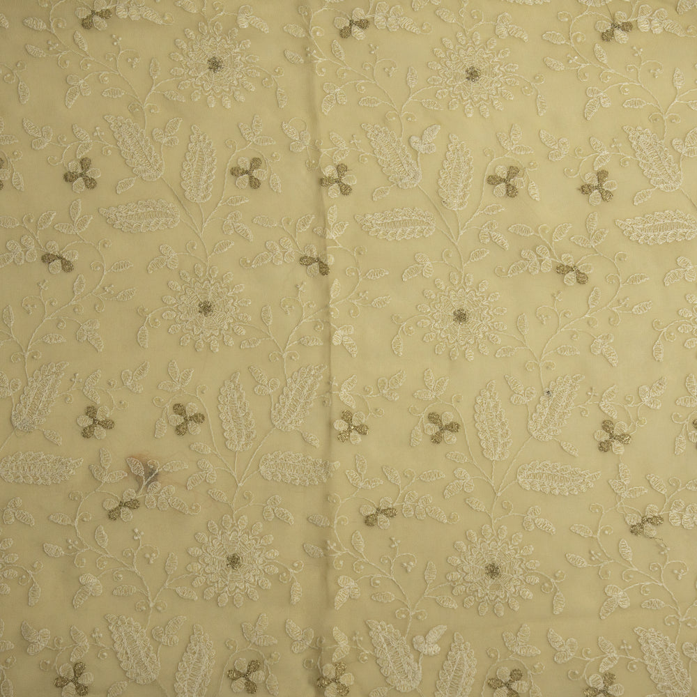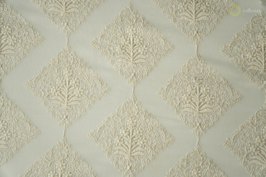 Kayra Floral Jaal on Cream Semi Georgette Embroidered Fabric