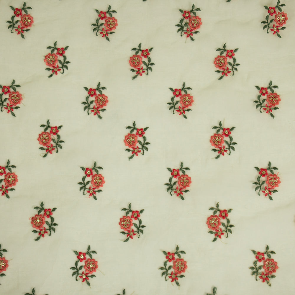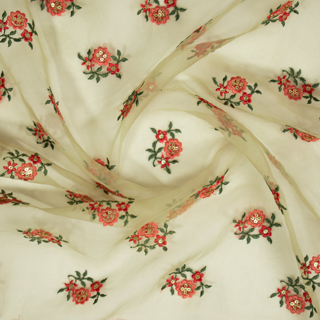 Jamila Floral Jaal on Cream Silk Organza Embroidered Fabric