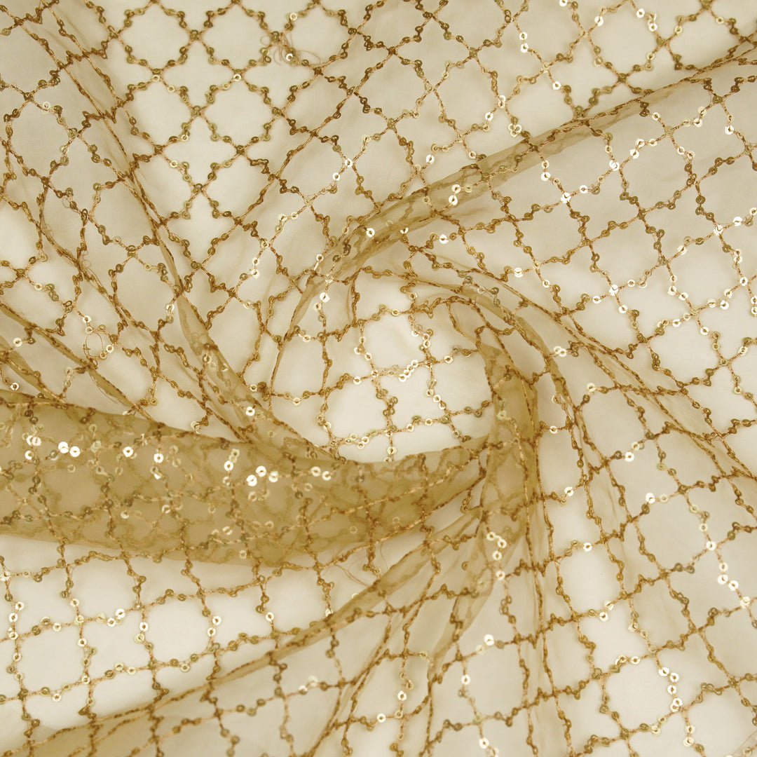 Gehena Sequins Jaal on Beige Imported Silk Organza Embroidered Fabric