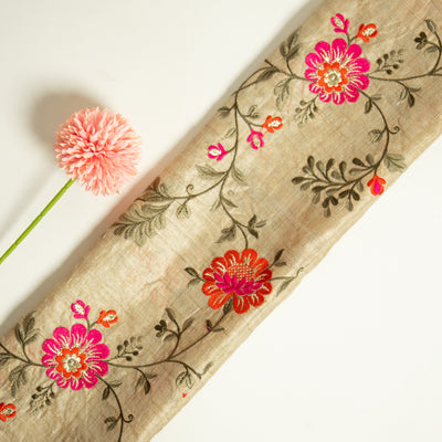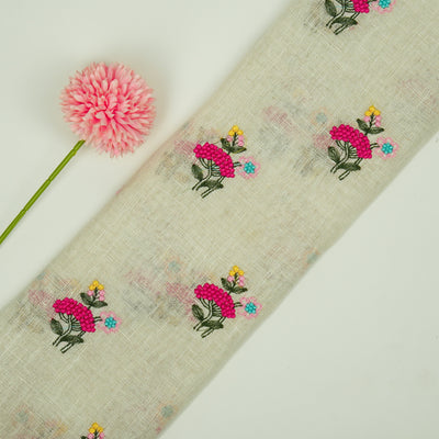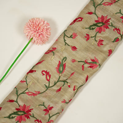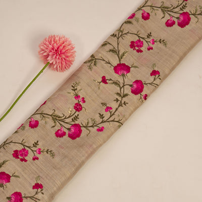 Kuhu Tiny Buti on Natural/Fuxia Tussar Silk Embroidered Fabric