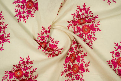 Taaliah Buta on Natural/Fuxia Munga Silk Embroidered Fabric
